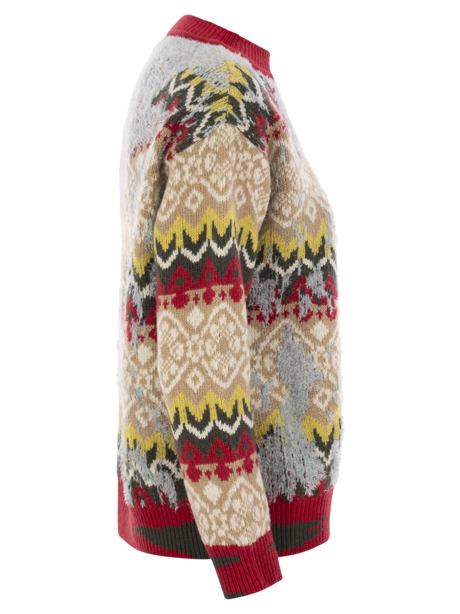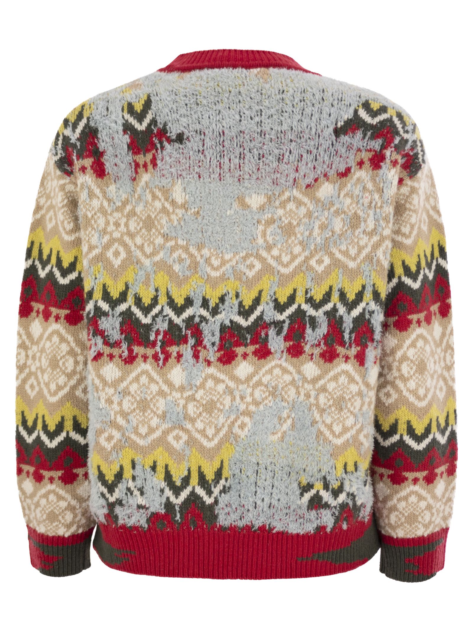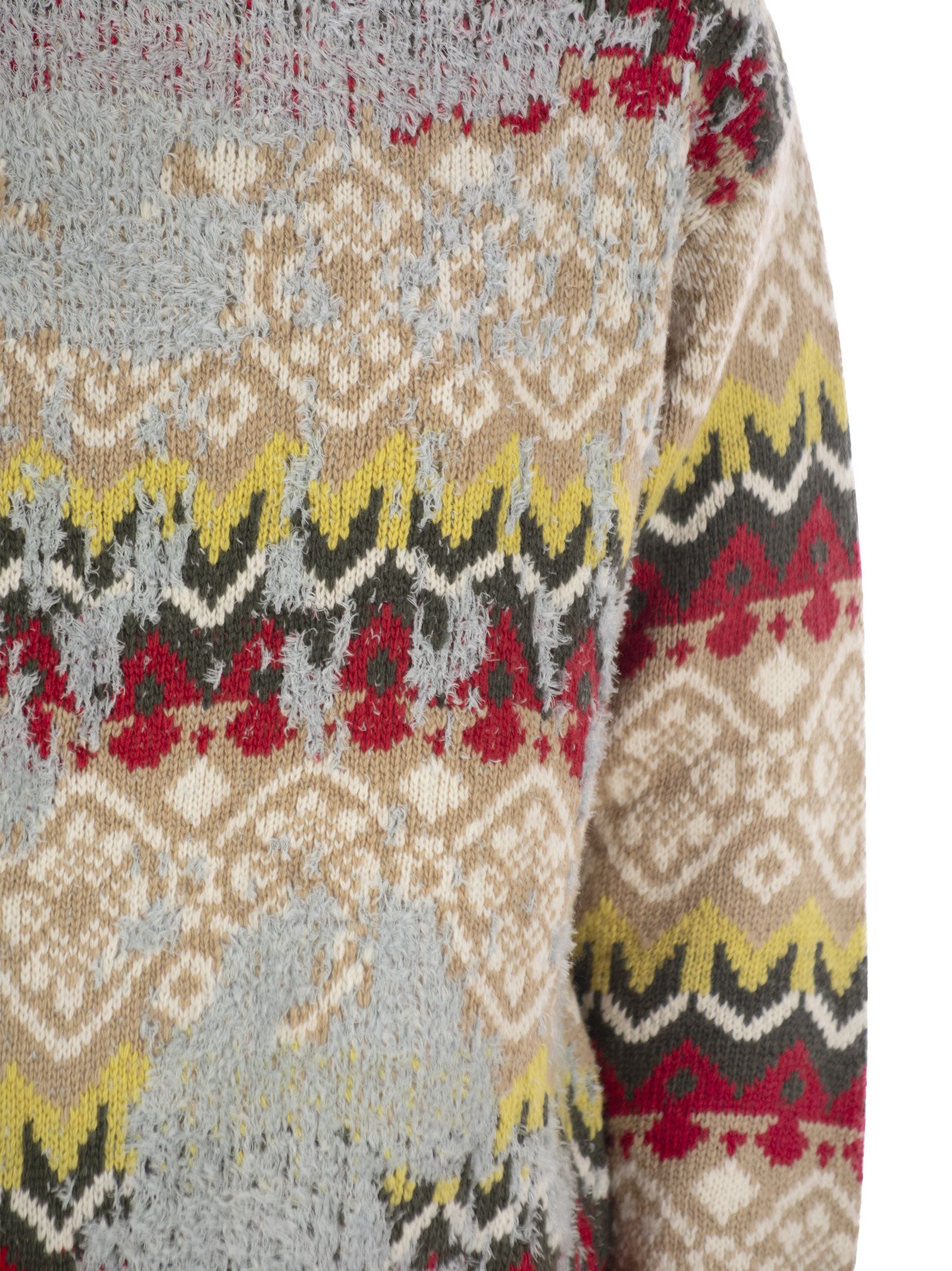سترة بياقة دائرية مصنوعة من مزيج الصوف ومزينة بنمط الجاكار الذي يرسم تصميمًا أنيقًا مستوحى من الطراز النوردي في كل مكان. موديل فضفاض بأكمام طويلة وقصة منخفضة، مع حواف مضلعة. يعد هذا الثوب جزءًا من كبسولة "A Weekend with Ashley Park" الجديدة. مستوحاة من صيف البحر الأبيض المتوسط والأناقة الباريسية، تقدم المجموعة ملابس متعددة الاستخدامات وخالدة مصممة لمرافقتك بأناقة وسهولة طوال اليوم. احتفال بالسحر المعاصر الذي يجمع بين الرقي والراحة. - رقبة دائرية - صناعة جاكار - مقاس فضفاض - رقم المصمم: 2425366016600 001