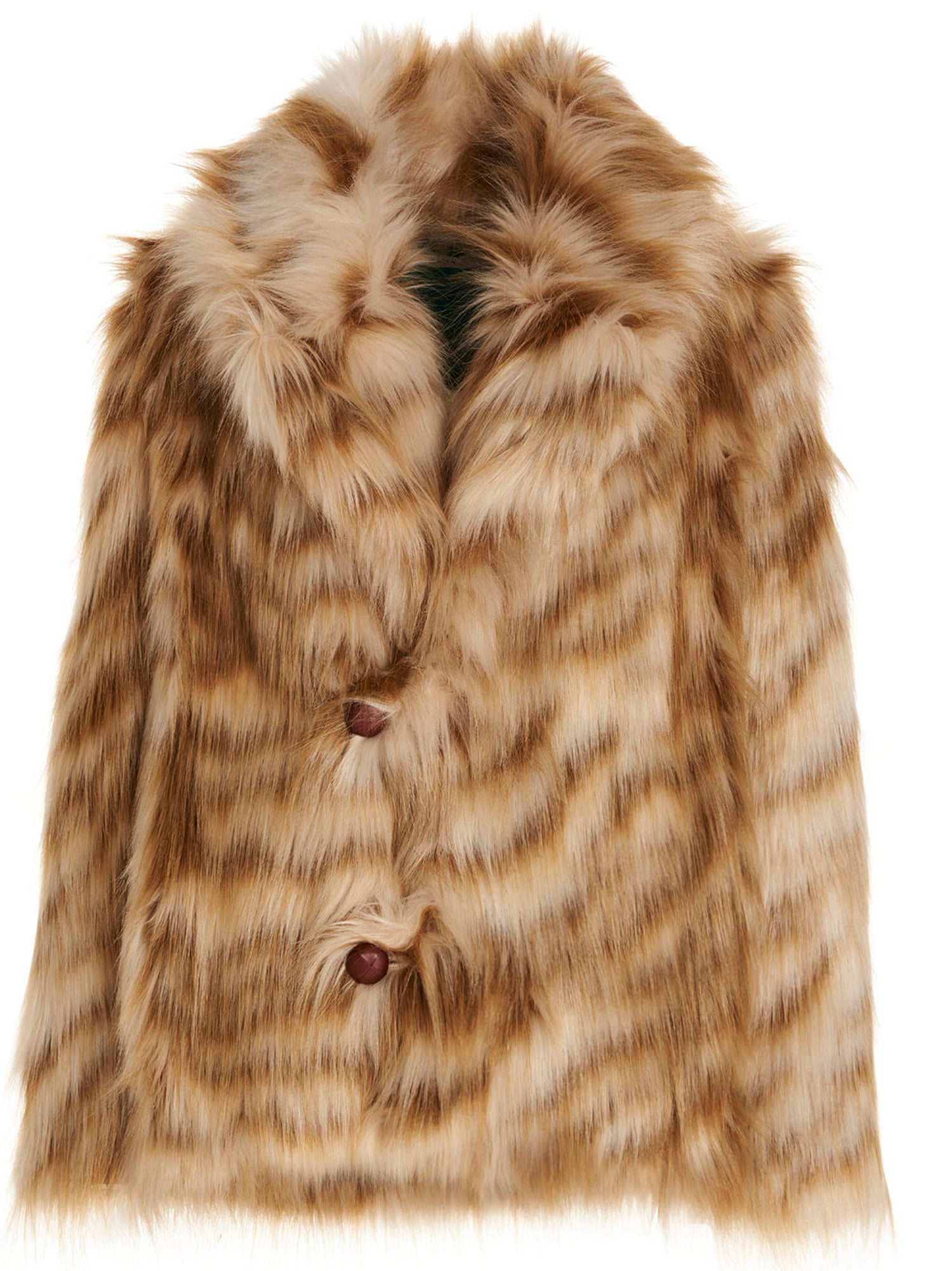 معطف من الفرو الصناعي من Reed بأزرار للإغلاق، وياقة فضفاضة، وجيوب، وأكمام طويلة.
