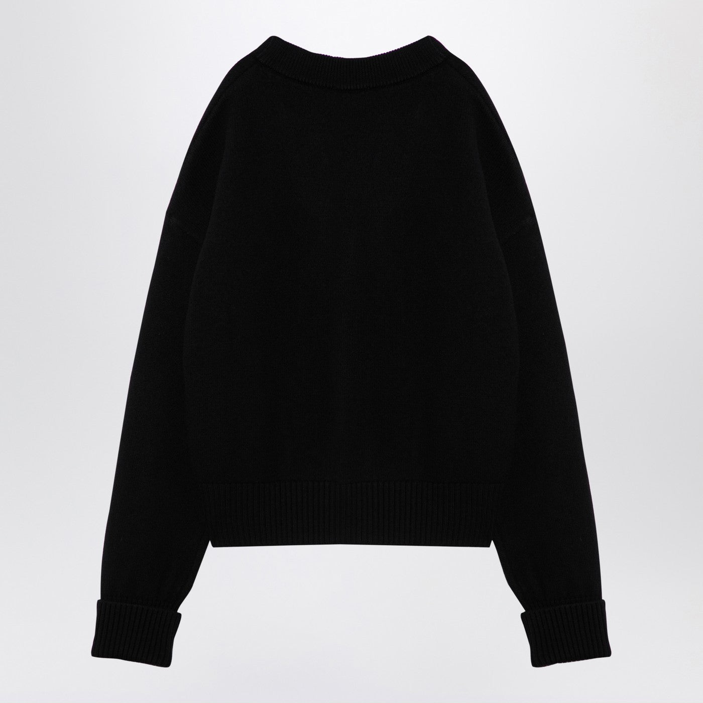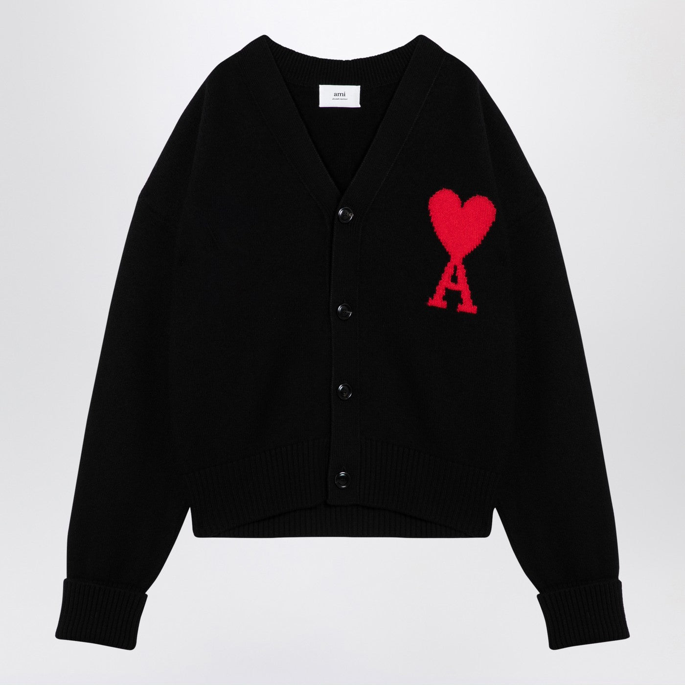 كارديغان من الصوف الجديد أسود من تصميم Ami Paris، يتميز هذا المنتج بتطريز Ami De Coeur على الصدر وأكمام طويلة وأزرار أمامية ورقبة على شكل حرف V وأكمام وحاشية مضلعة.