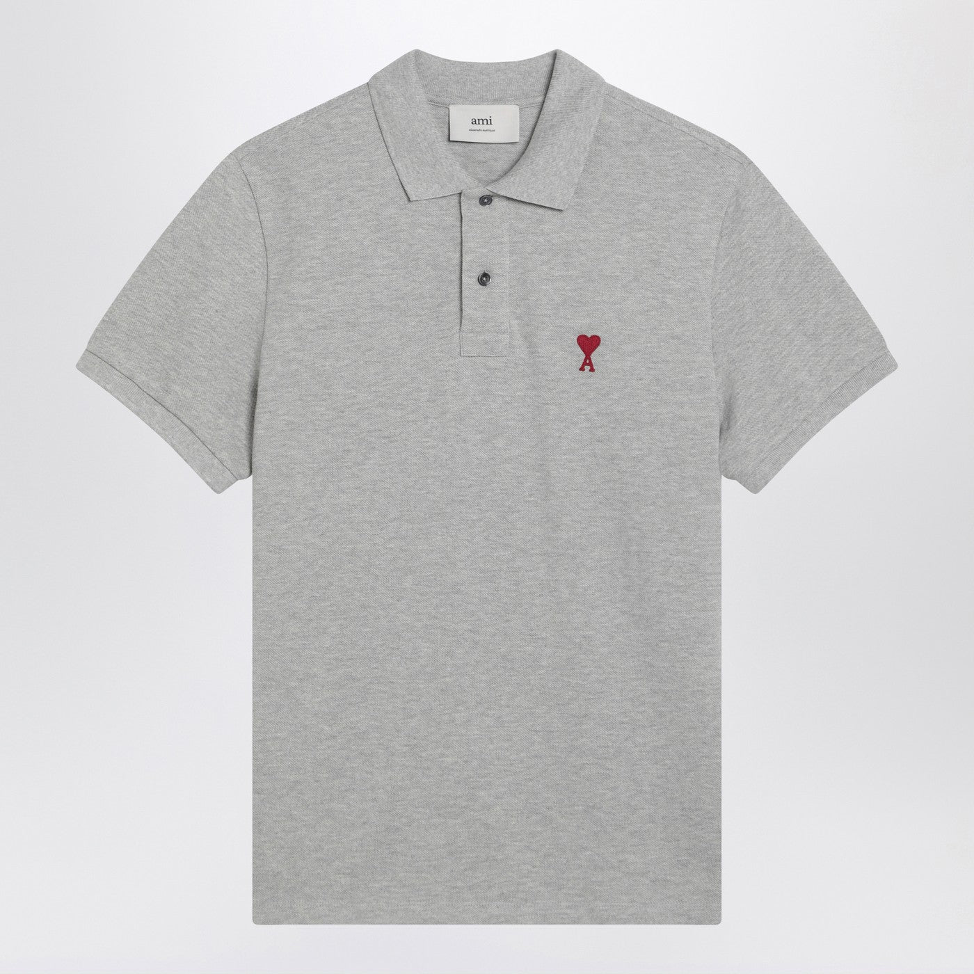 قميص رمادي القطن العضوي Ami Paris Polo الذي يتميز بأكمام قصيرة ، و Ami de Coeur Embroidery على الصدر ، والأزرار على فتحات التهوية الأمامية والجانبية.