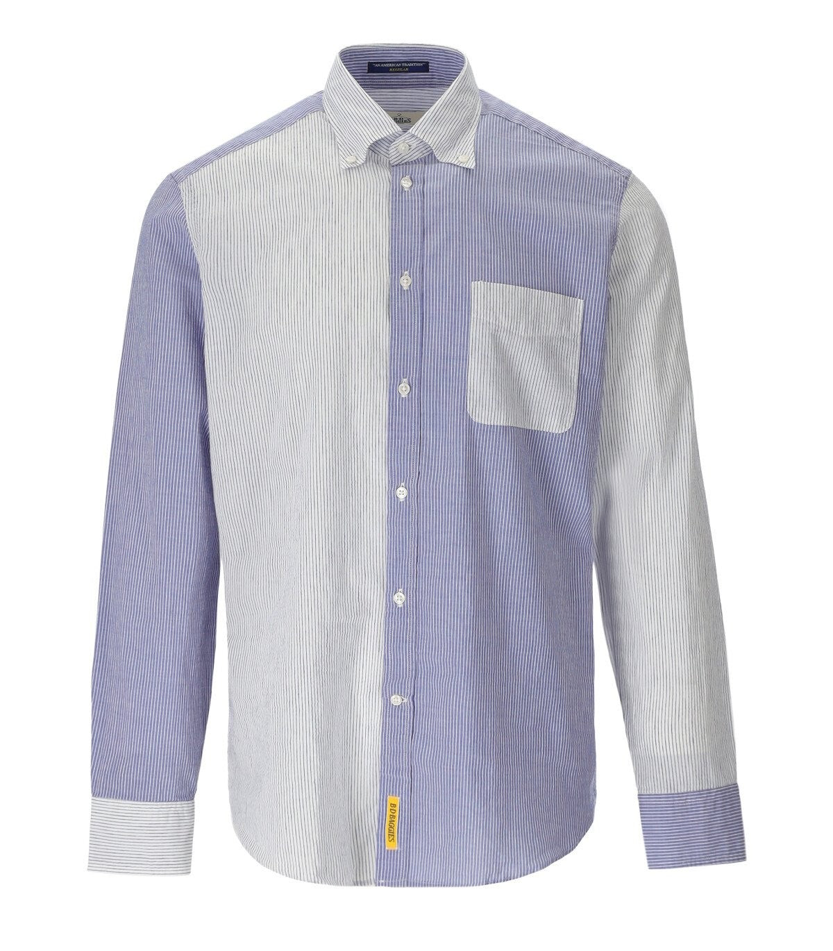 قميص B-D Baggies مصنوع من القطن والكتان بظلال من اللونين الأزرق والأبيض، مع تصميم مقلم متباين. جيب على الصدر وأساور أكمام قابلة للتعديل. تناسب راحة. التركيب: 90% قطن، 10% كتان.