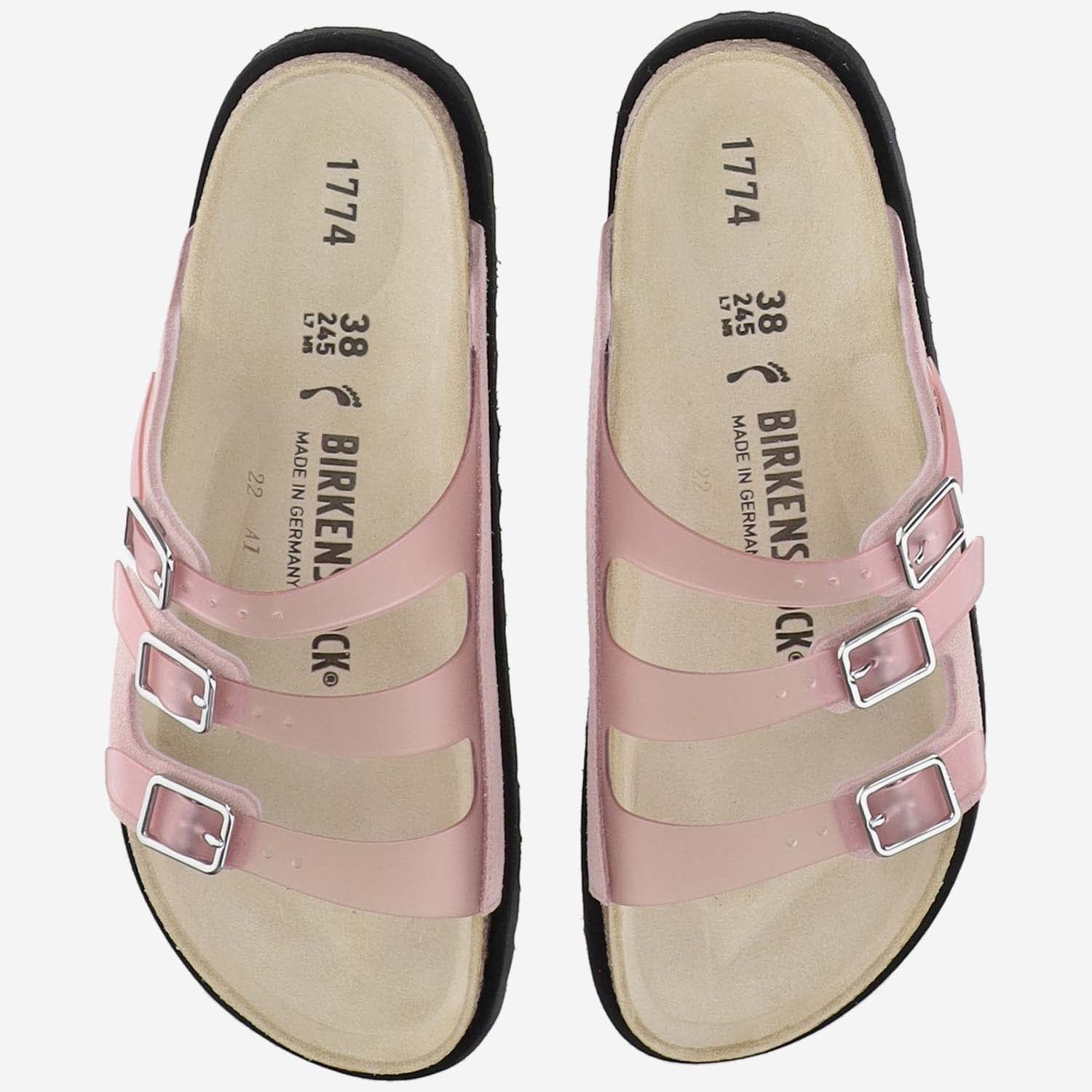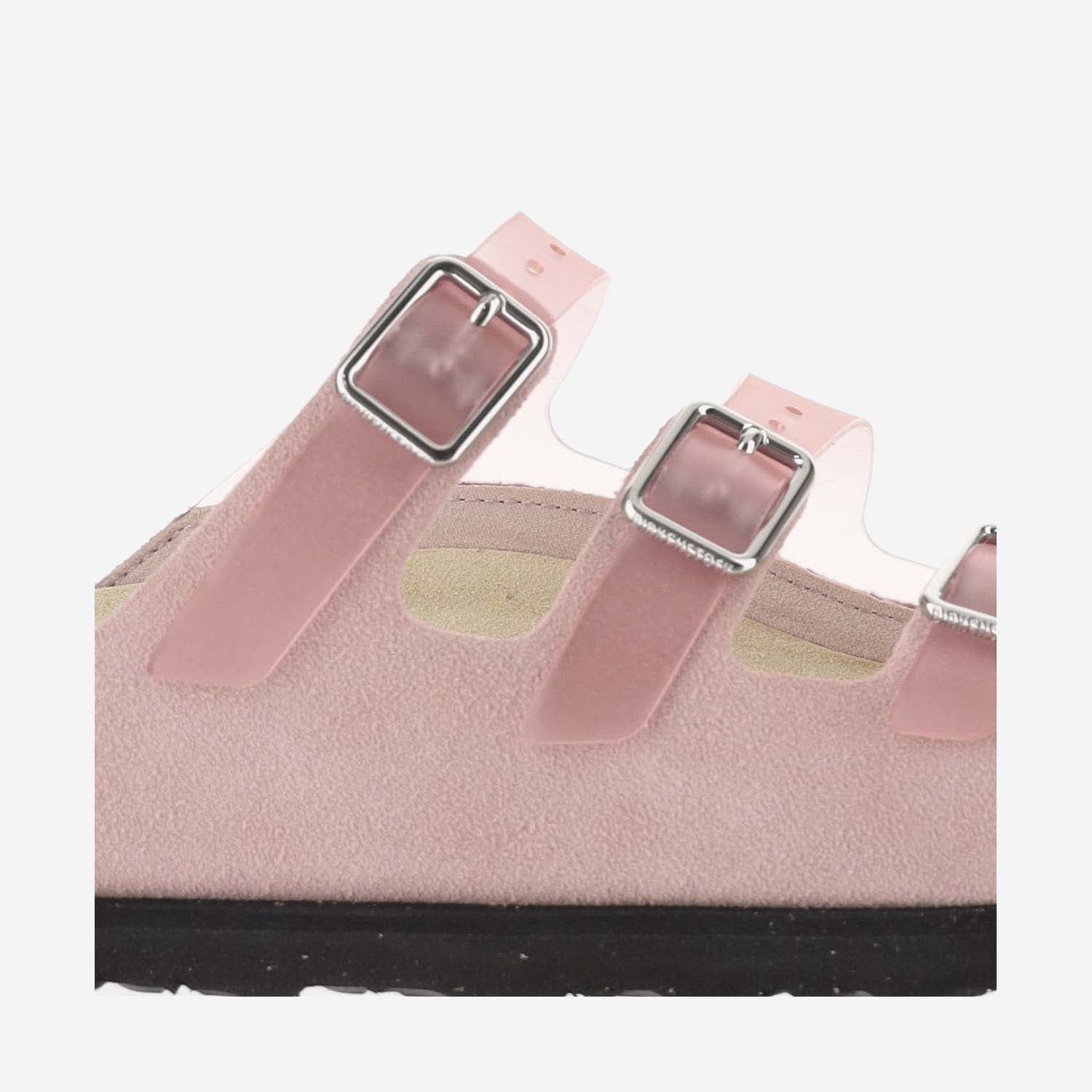صندل مصنوع من مادة PVC شبه الشفافة مع زخرفة من الجلد السويدي