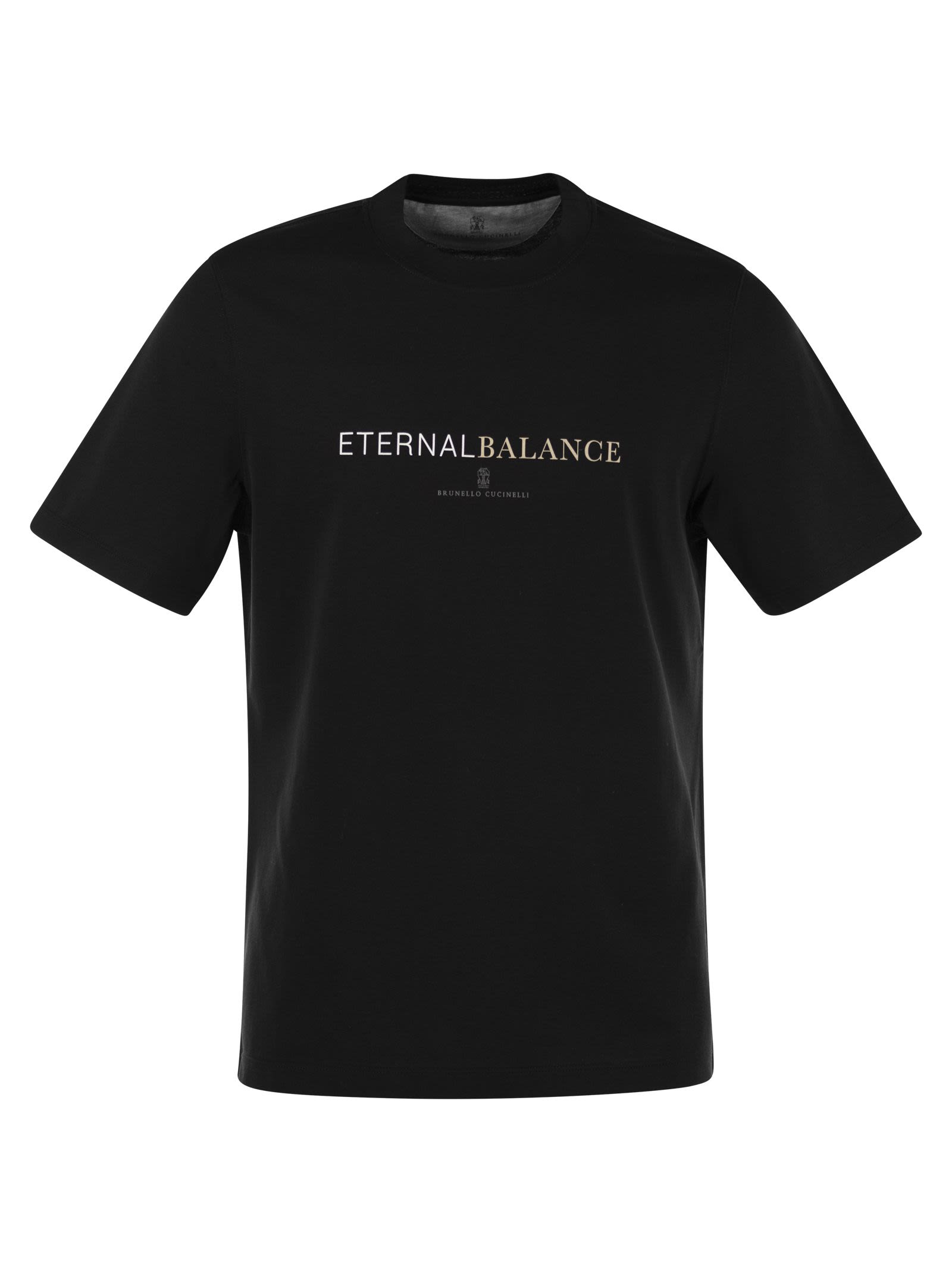 تي شيرت برونيلو كوتشينيللي قطن جيرسي بياقة دائرية مع طباعة