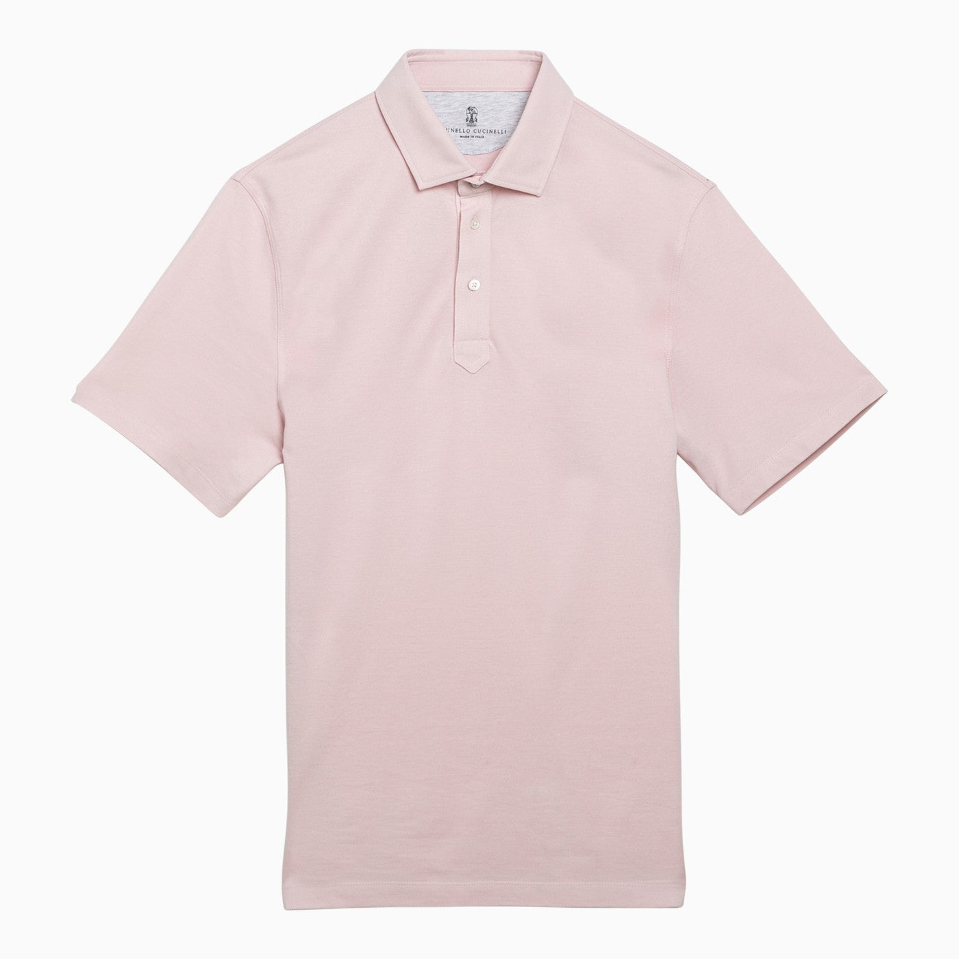 قميص بولو من القطن باللون الوردي بأكمام قصيرة من برونيلو كوتشينيللي