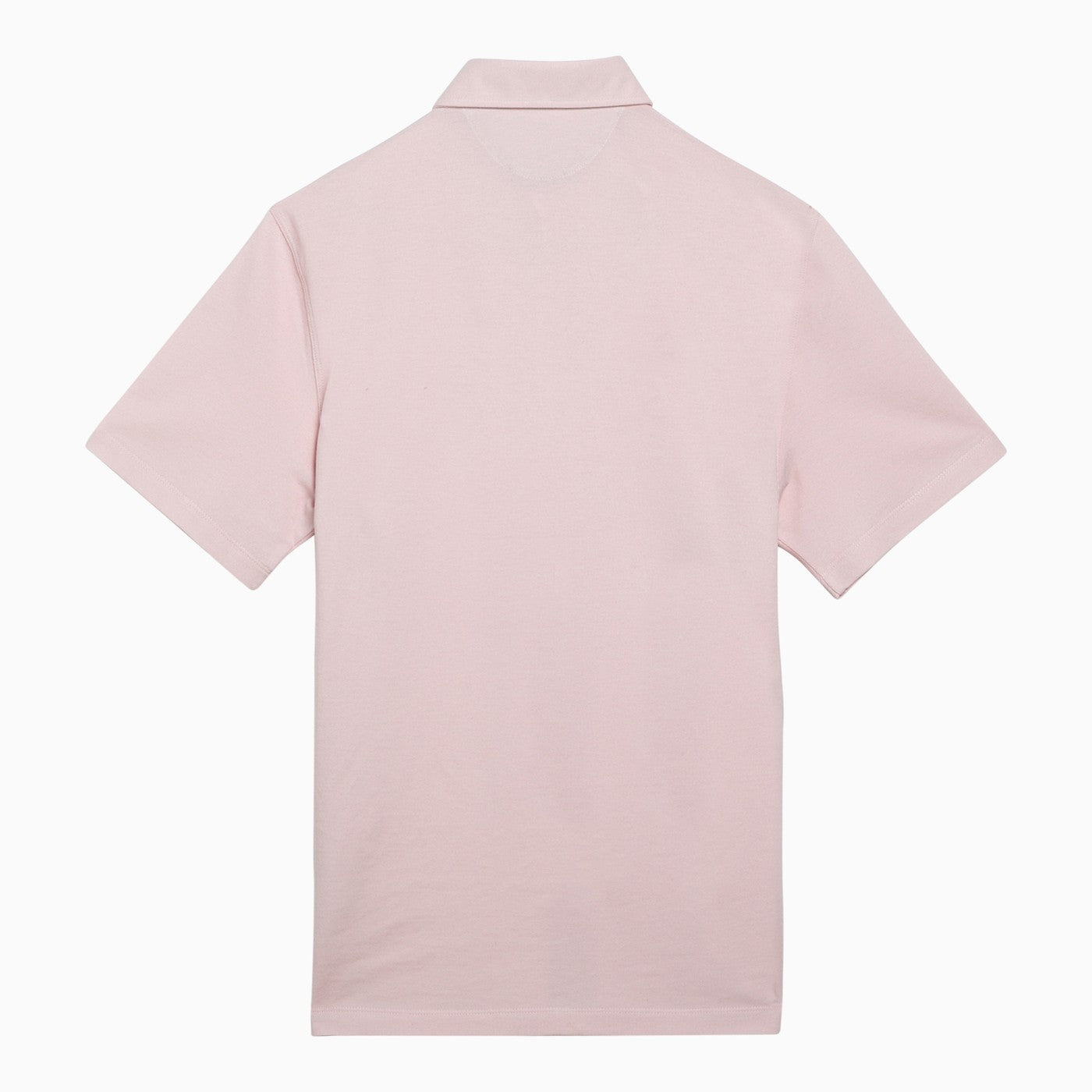 قميص بولو بأكمام قصيرة من تصميم Brunello Cucinelli باستخدام القطن الوردي، يتميز بياقة كلاسيكية وثلاثة أزرار في الأمام وقصة عادية.