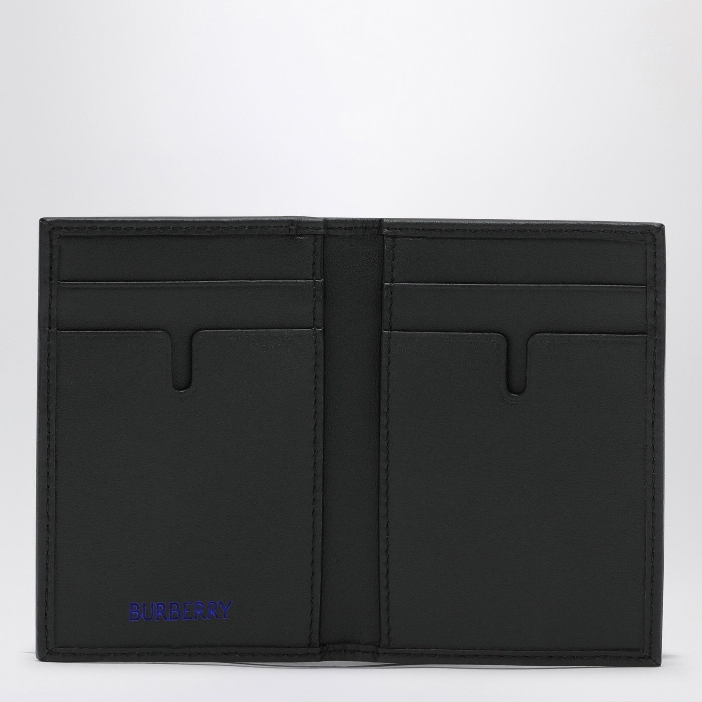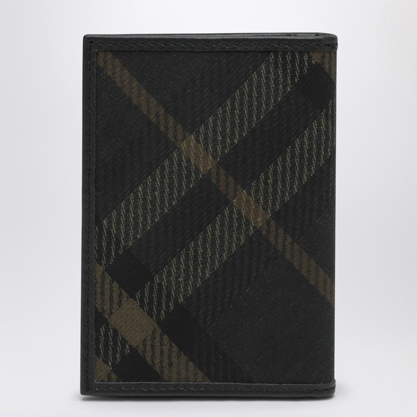 محفظة بطاقات من بربري مصنوعة من قماش الظل الأسود مع طبعة مربعات، وتتميز بفتحات للبطاقات وشعار بحروف زرقاء متباينة.