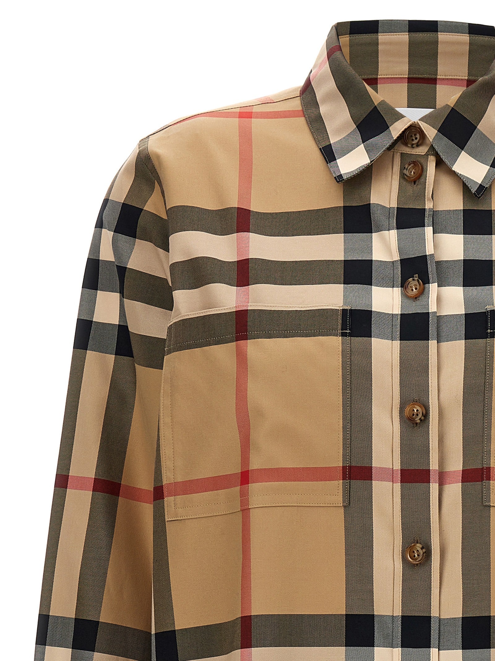 قميص "Paola" قطني مزين بطبعة كاروهات على كامل التصميم، وزر للإغلاق، وجيب مزدوج على الصدر.