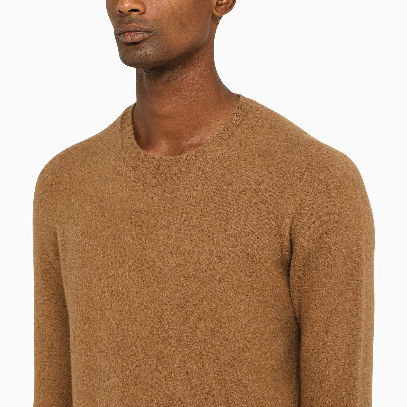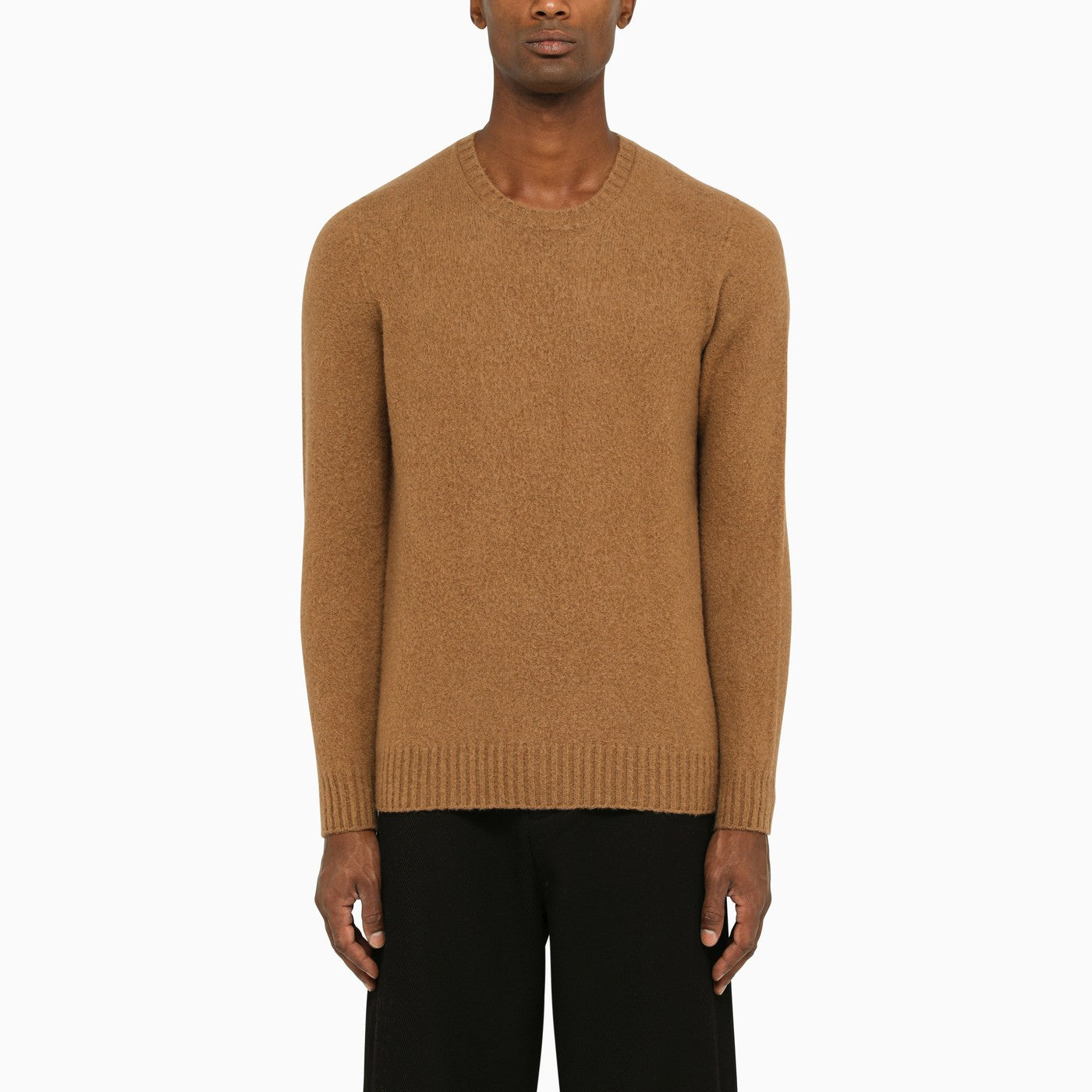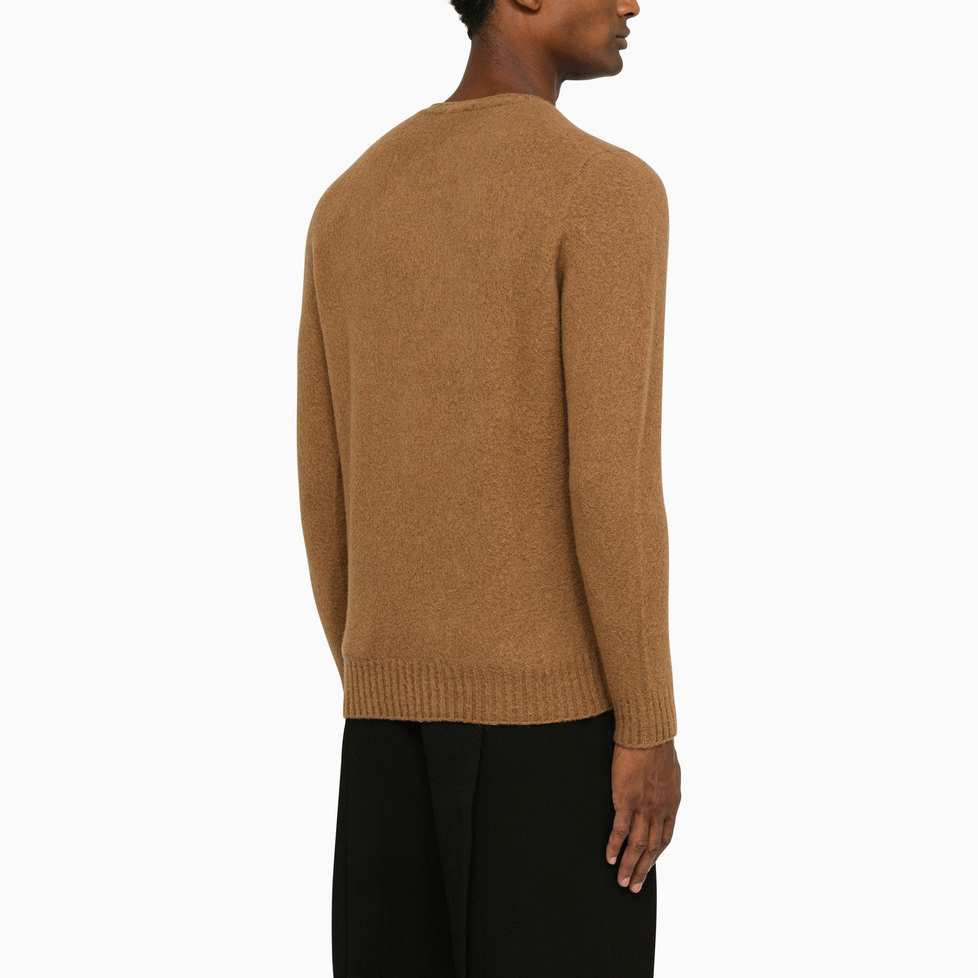 درومهورs سترة بياقة دائرية من صوف الجمل، تتميز بحواف مضلعة وقصة عادية.
