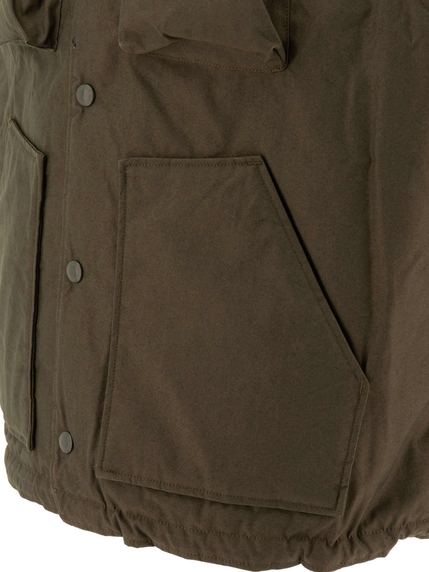 تمثل سترة "Field" بدون أكمام من شركة Engineered Garments جوهر الملابس العملية مع لمسة من الطراز العتيق. تم تصميم هذا الثوب خصيصًا للرجل العصري، وهو مثالي لأولئك الذين يحبون الجمع بين العملية والعصرية بشكل لا تشوبه شائبة. مصنوع من القطن المتين ويتميز بغطاء رأس برباط، ويوفر الحماية من العناصر مع الحفاظ على مظهر نظيف وأنيق. || - مقاس عادي - إغلاق بزر كبس - جيوب على طراز الحمولة - الداخلية المتناقضة || مثالي للارتداء فوق قميص كاجوال مع بنطال شينو لمظهر مريح وأنيق. أكمل إطلالتك مع حذاء رياضي أبيض أو حذاء جلدي للكاحل لإضفاء لمسة من الأناقة الحضرية.