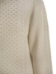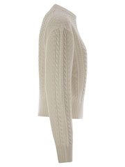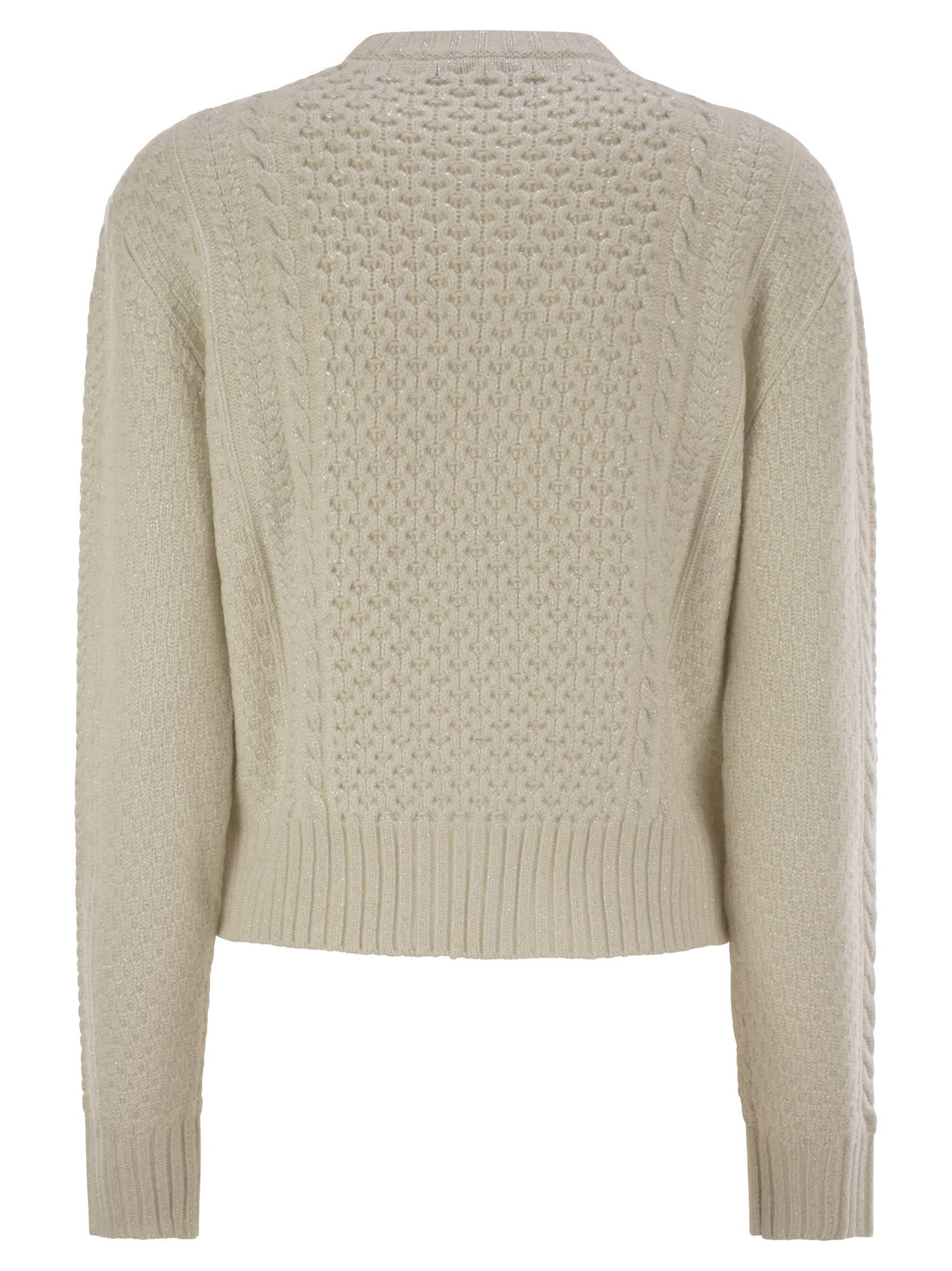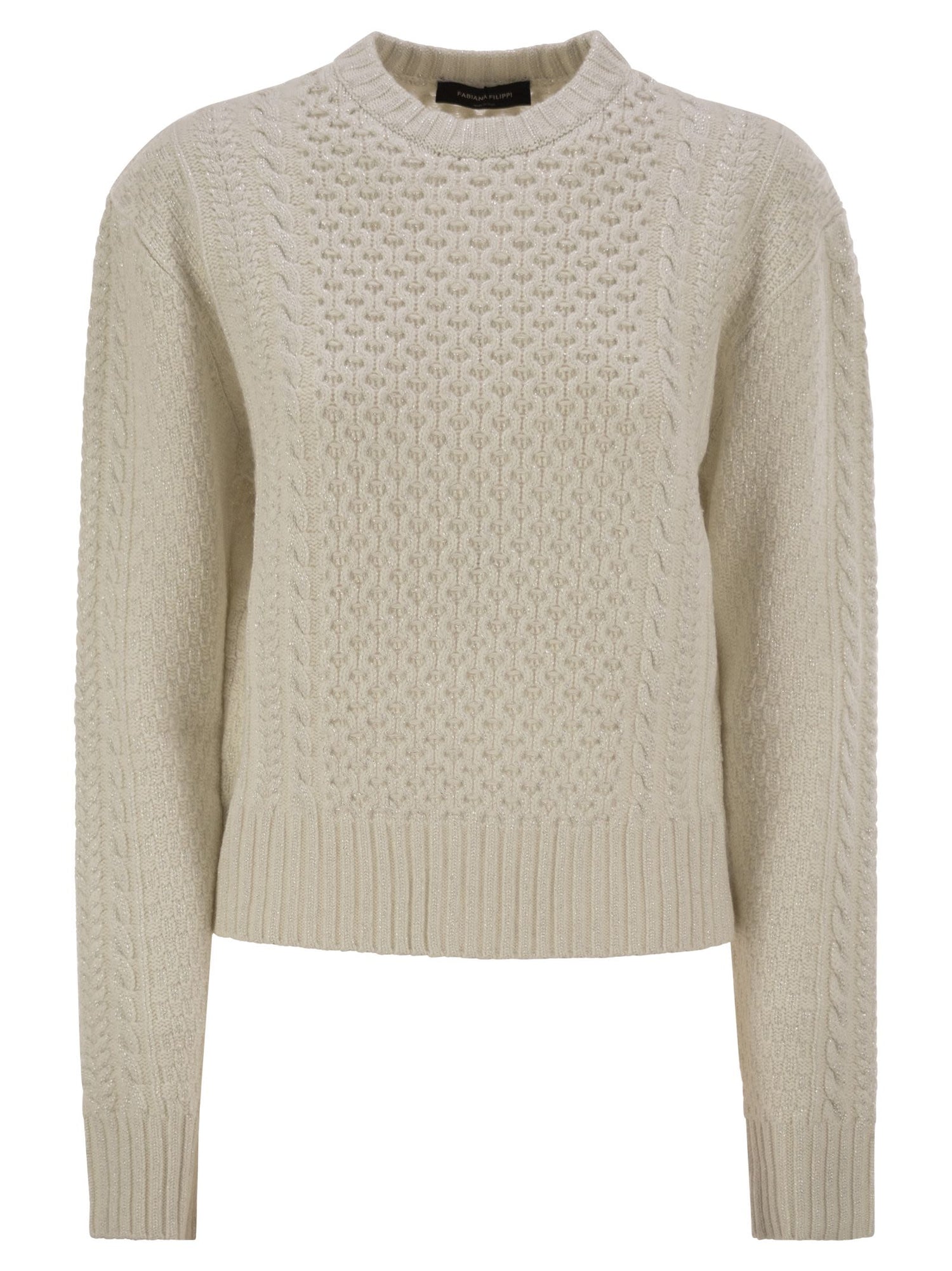 Fabiana Filippi's new collection is characterised by regular lines and special workmanship. An essential design characterises this cropped fisherman's jumper in Platinum yarn with shiny lurex. A garment defined by the crew neck and slim fit. - Platinum yarn with lurex - Fisherman sweater - Crew neck - Slim fit DESIGNER ID: MAD224F031L002 25
