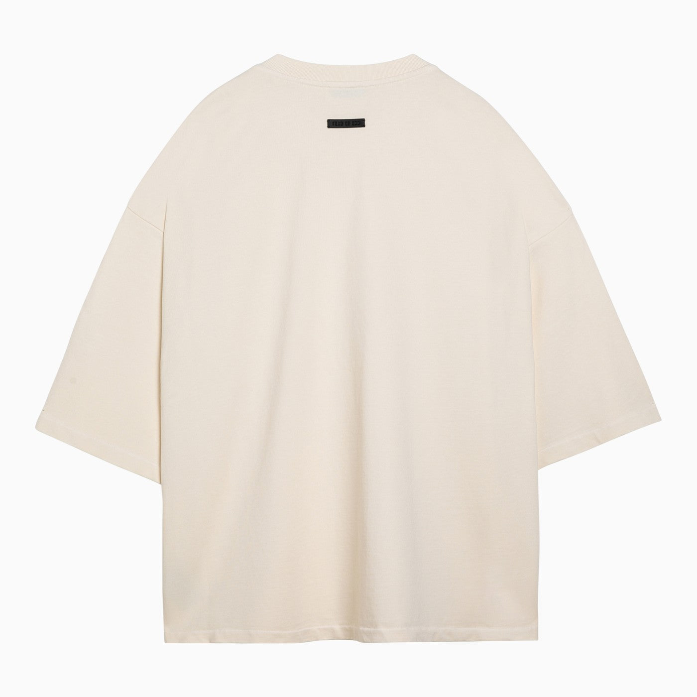 تيشيرت برقبة دائرية من تصميم Fear of God باستخدام القطن، يتميز هذا المنتج بأكمام قصيرة وياقة مضلعة وشعار مخيوط على الظهر وأطراف مستقيمة وتفصيل ضخم.