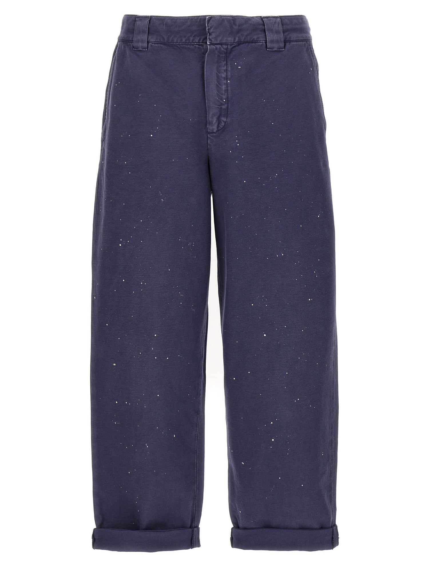 بنطلون "تشينو سكيت إفريم" من القطن المصبوغ مع تأثير بقع الجلد اللامع، إغلاق بسحاب بخطاف وزر، جيوب، حاشية مطوية لأعلى.