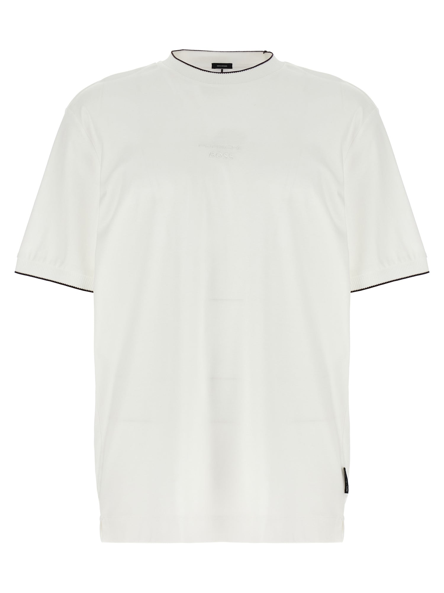 تي شيرت Porsche x BOSS Capsule "Thompson 40" مصنوع من القطن المرسيري، وتطريز الشعار بدرجة اللون على الجهة الأمامية، وياقة وأكمام مضلعة، ورقبة دائرية، وأكمام قصيرة.