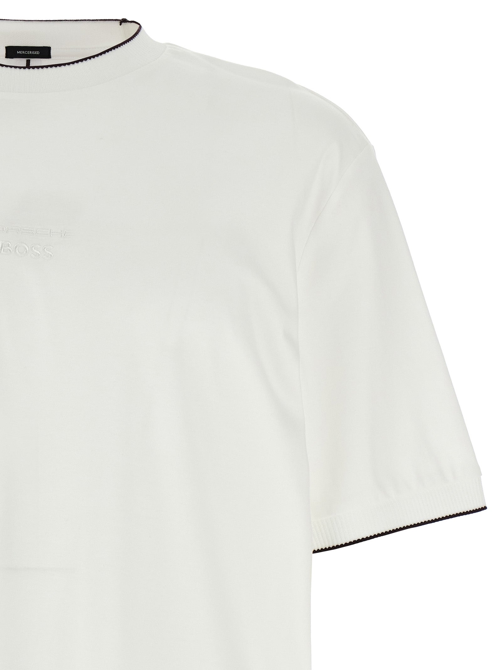 تي شيرت Porsche x BOSS Capsule "Thompson 40" مصنوع من القطن المرسيري، وتطريز الشعار بدرجة اللون على الجهة الأمامية، وياقة وأكمام مضلعة، ورقبة دائرية، وأكمام قصيرة.