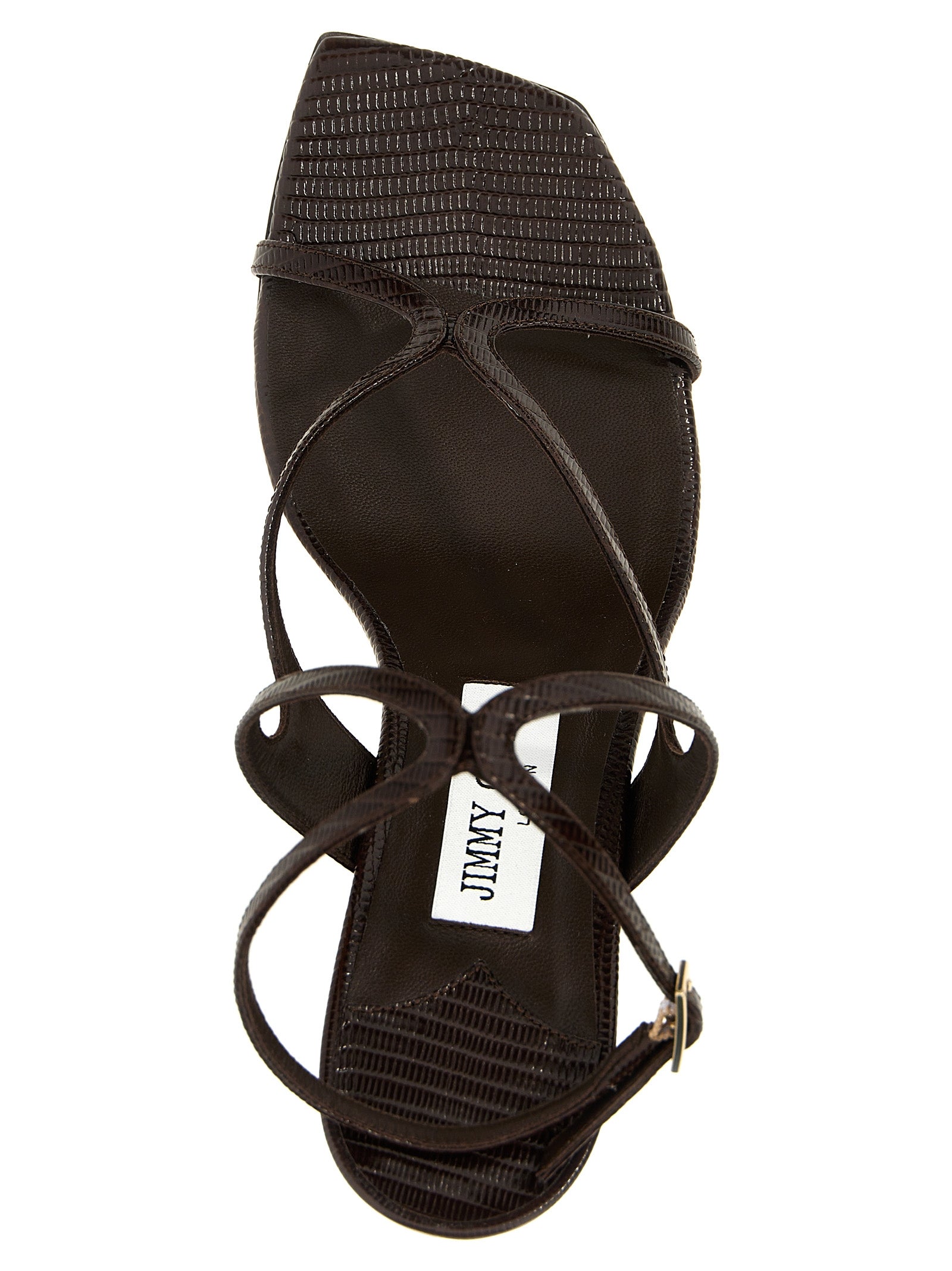 صنادل من الجلد "Azie" طباعة من الجلد مع حزام كاحل قابل للتعديل ، وأصابع القدم المربعة ، وكعب مكتنزة ، وجلد.