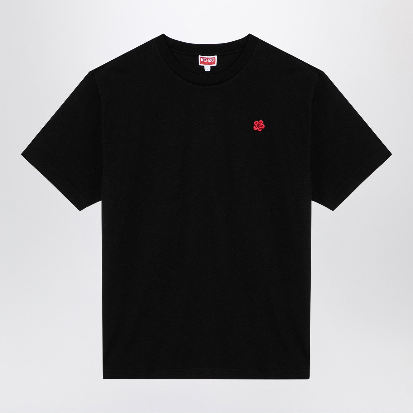 كينزو تي شيرت قطن أسود مع رقعة الشعار