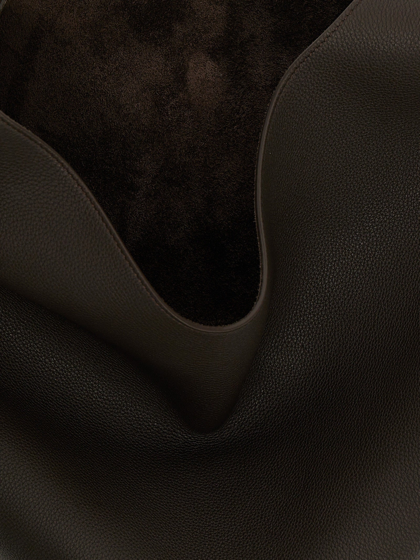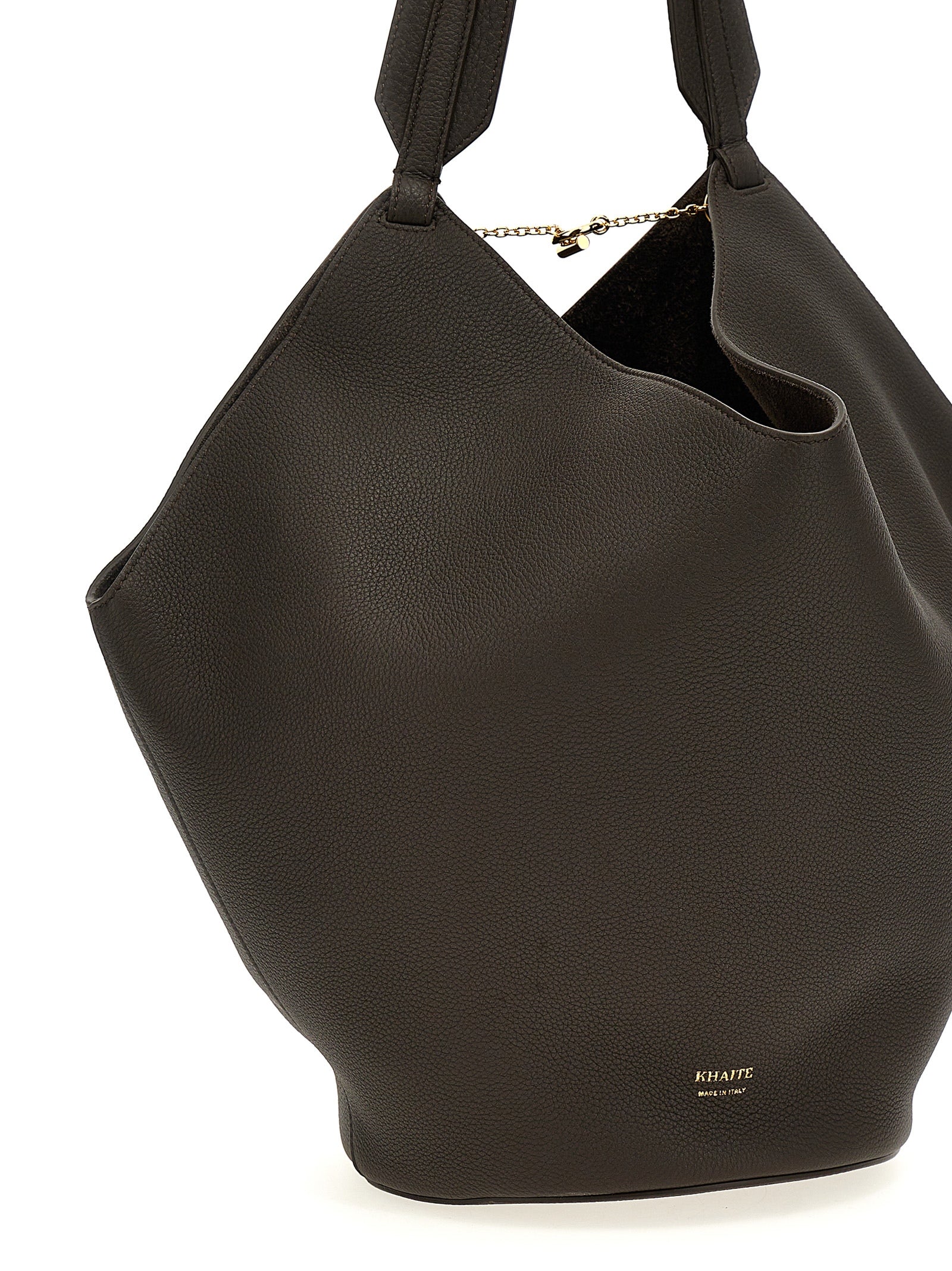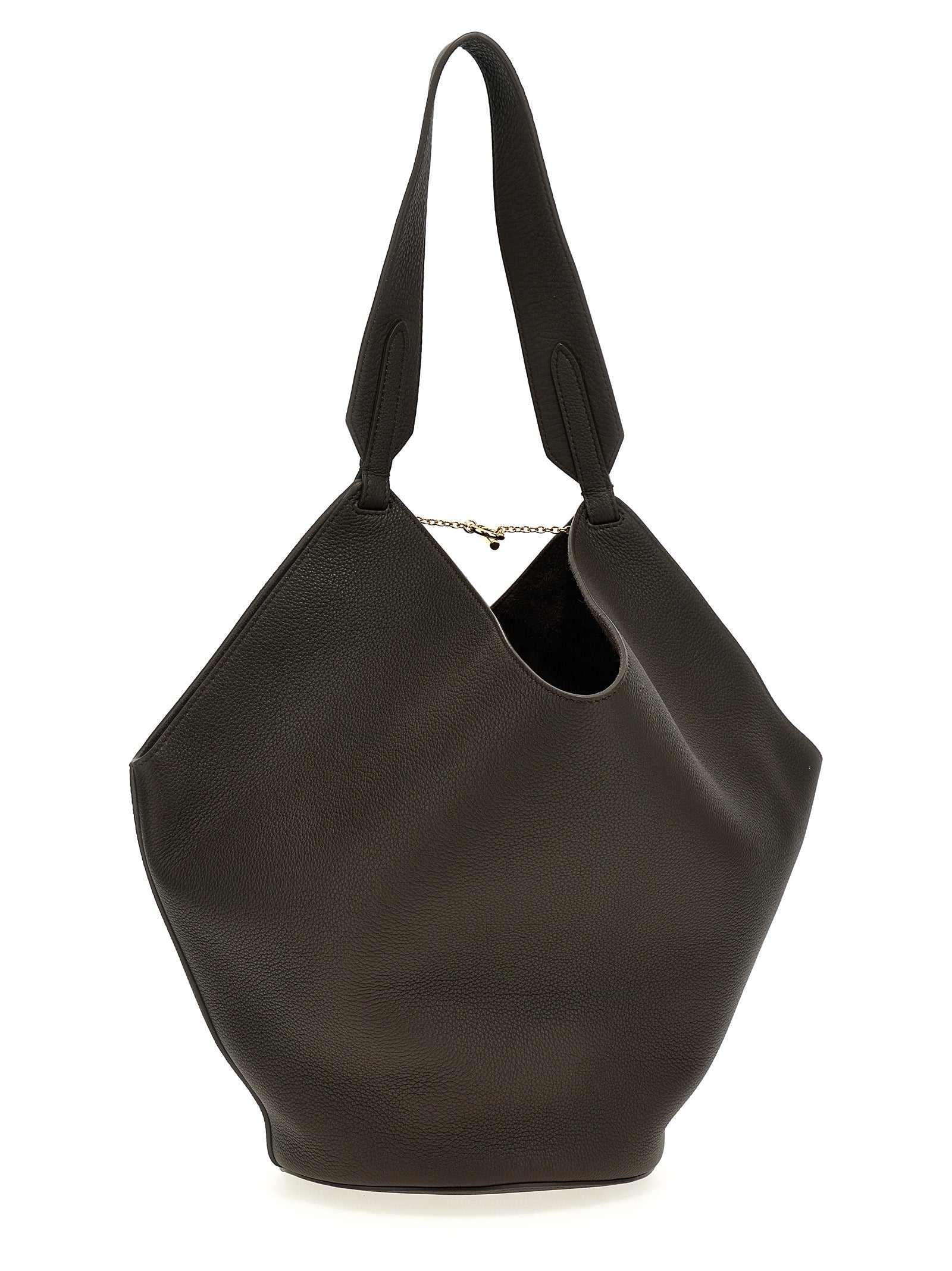 حقيبة تسوق "Lotus Small" مصنوعة من جلد العقيق، ومقبض ثابت، وقفل جناح معدني ذهبي، وشعار منقوش على الأمام.