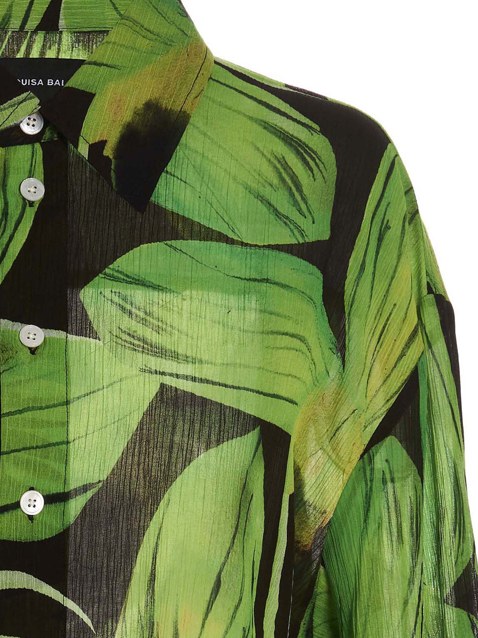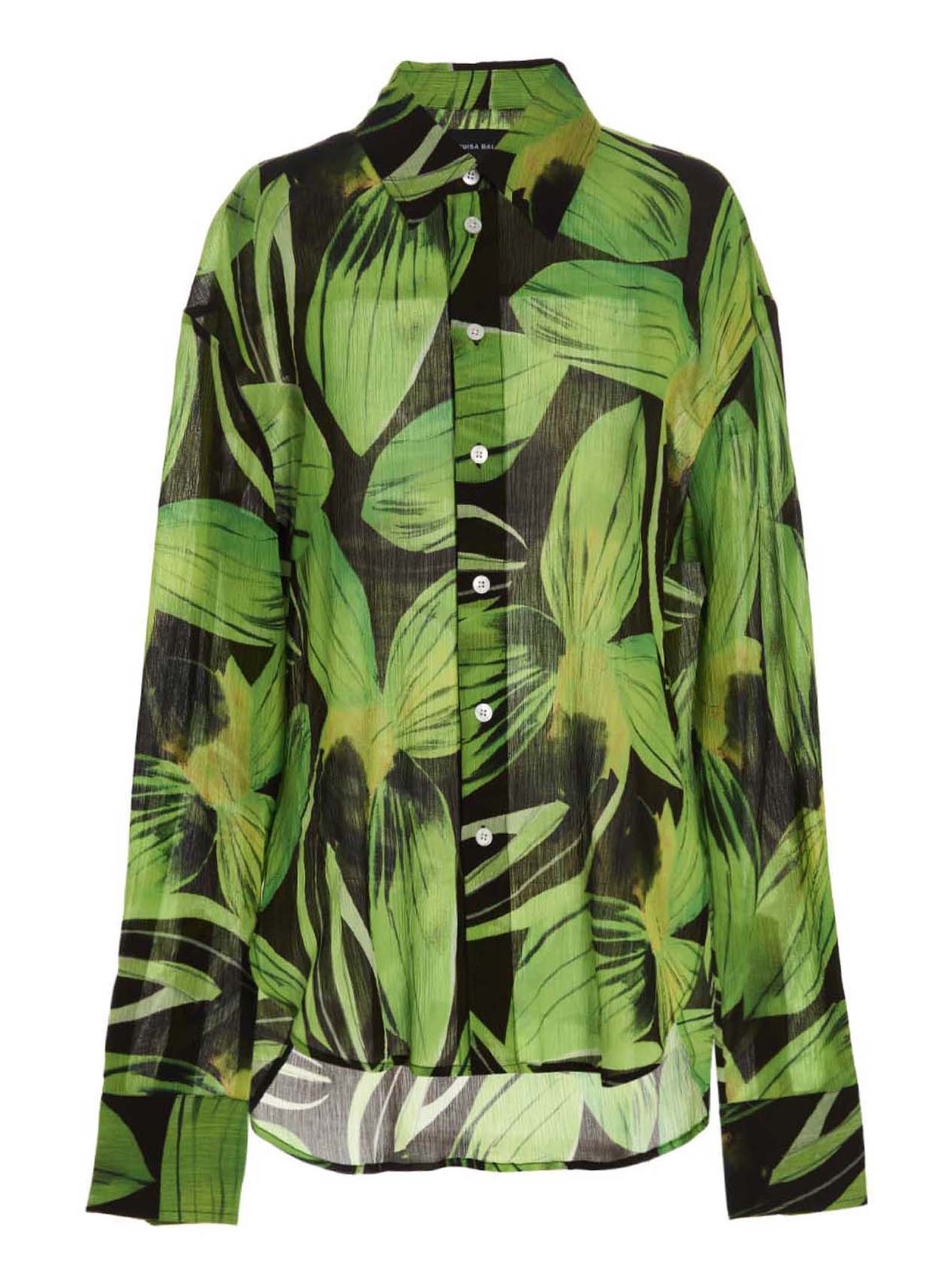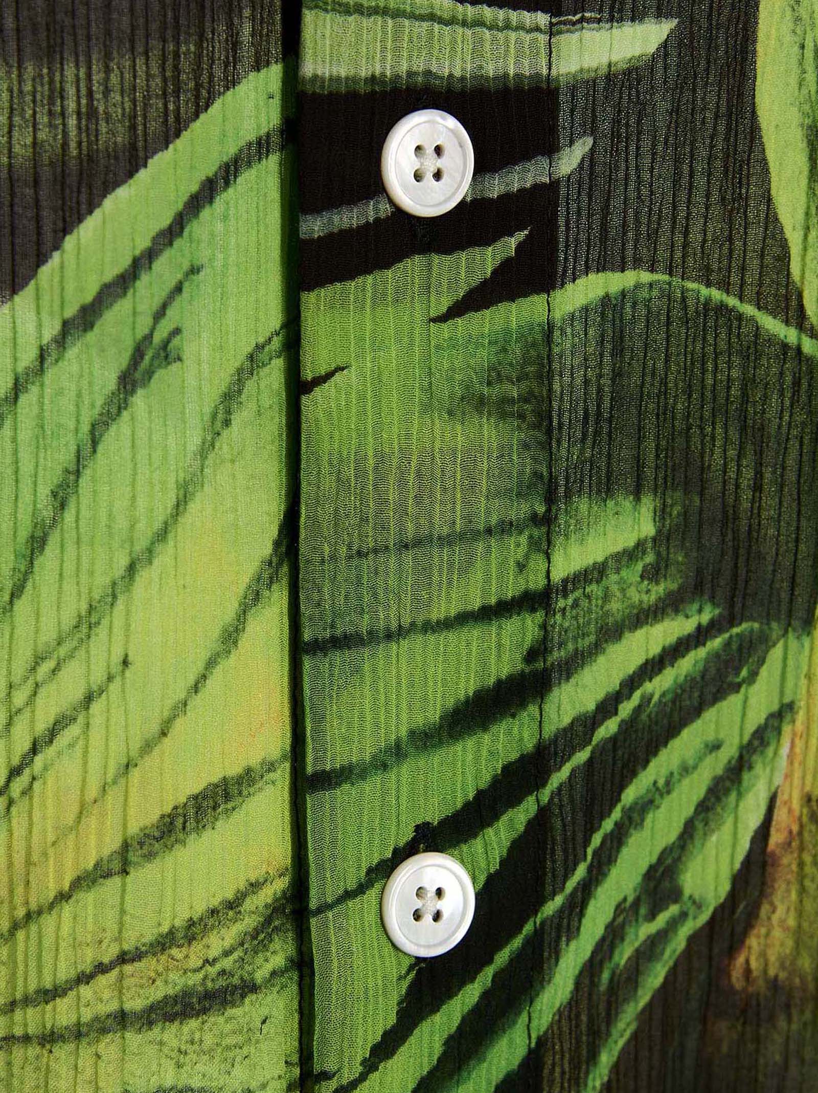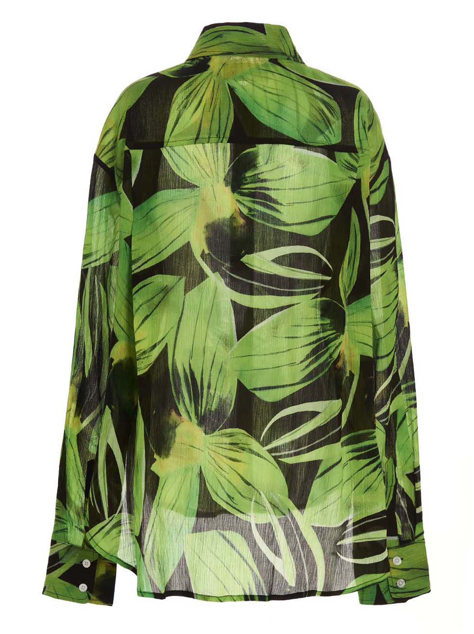 قميص واسع من مزيج الحرير مع طبعة كاملة، وزر للإغلاق، وأكمام طويلة بأساور.