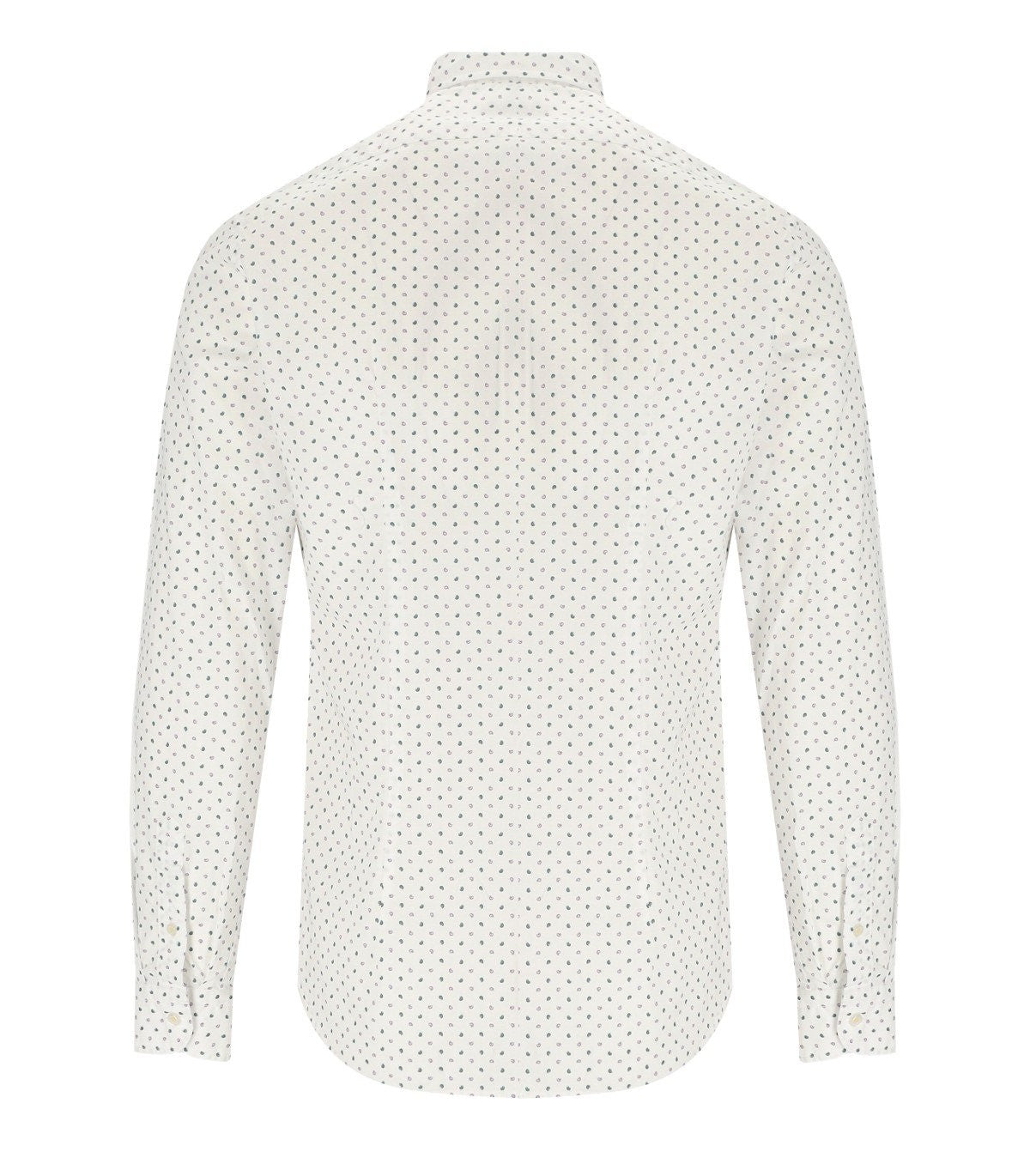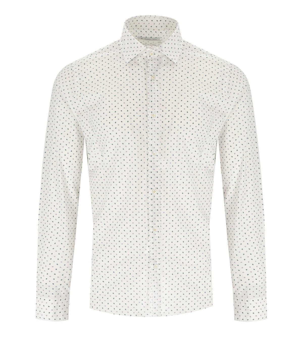 قميص مانويل ريتز مصنوع من القطن الأبيض مع نقش باللونين الوردي والأخضر. شعار مطرز في الأسفل وزر للإغلاق. جسد مثالي. هذا المنتج ذو مقاس صغير، نوصي بشراء مقاس أكبر من المعتاد بدرجة واحدة. التركيب: 97% قطن، 3% إيلاستين.