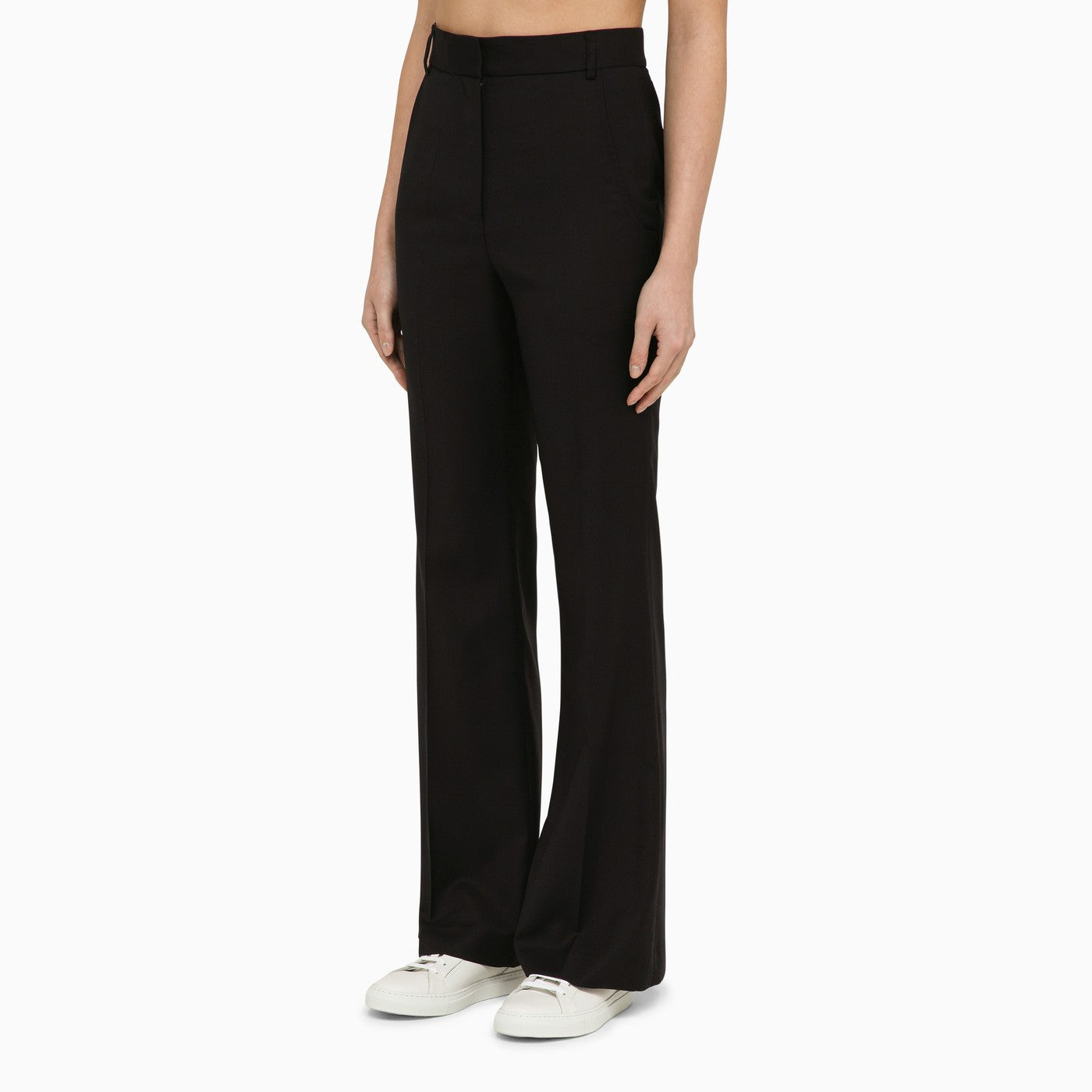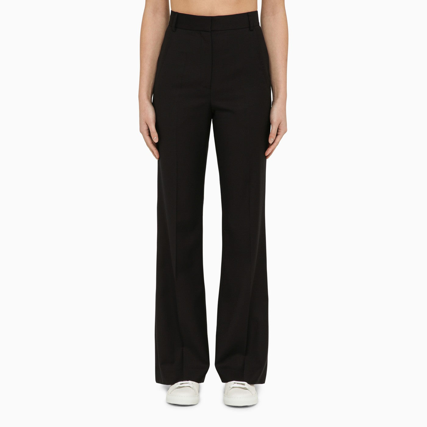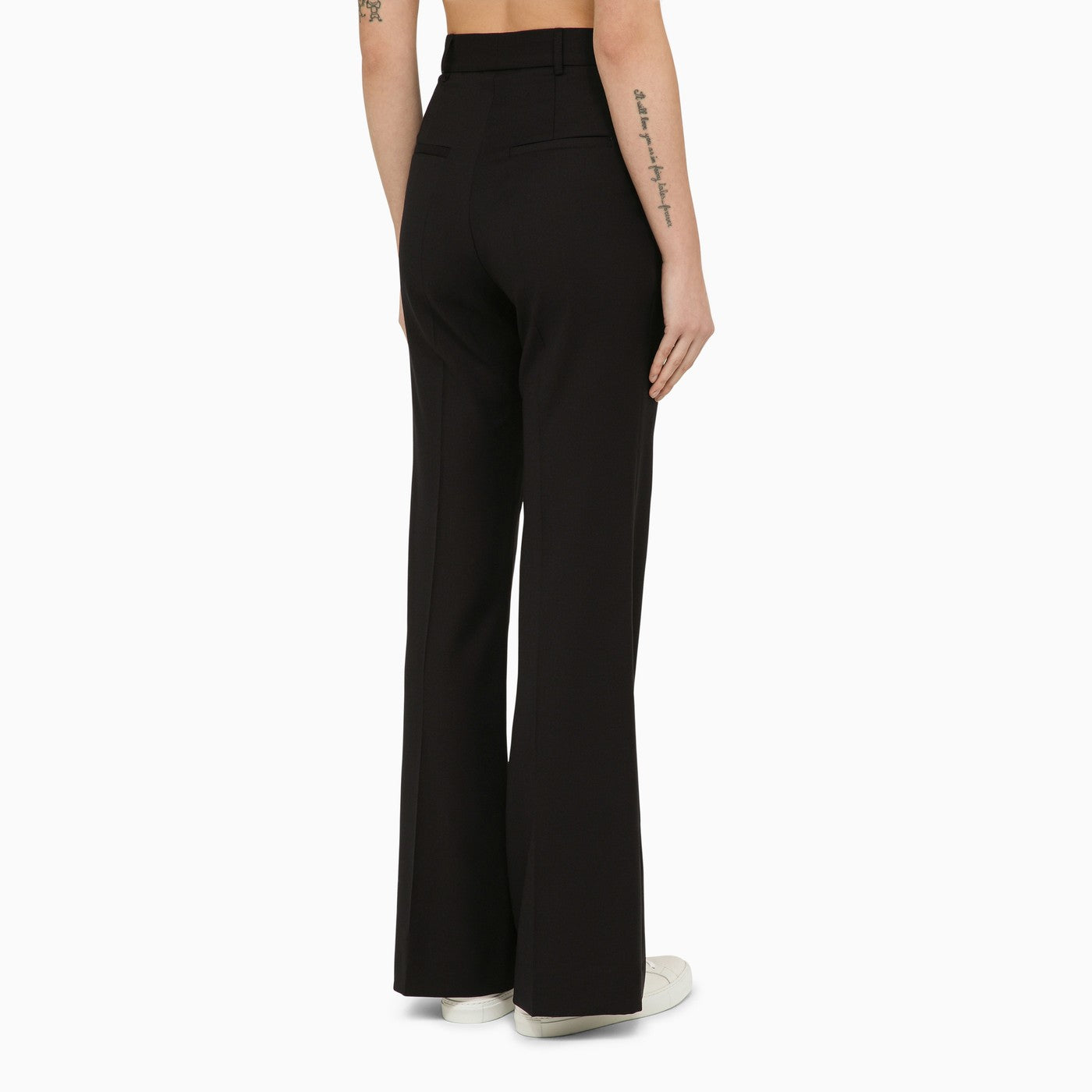 بنطال صوف أزرق من تصميم Margaux Lonnberg، يتميز هذا المنتج بغلق بسحاب وخطاف أمامي وحلقات للحزام وخصر عالي وجيبان جانبيان مبطنان وجيبان خلفيان مبطنان.