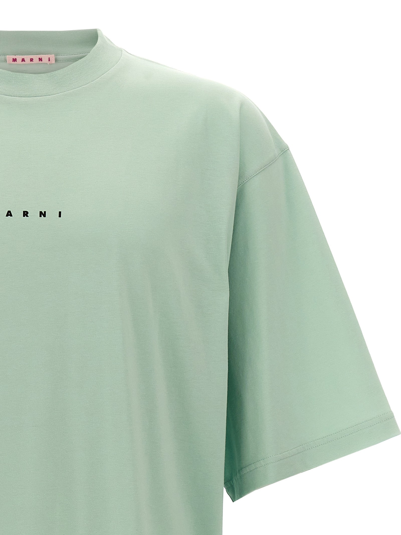 تيشيرت من القطن بطبعة شعار أمامي متباين اللون، رقبة دائرية، وأكمام قصيرة.