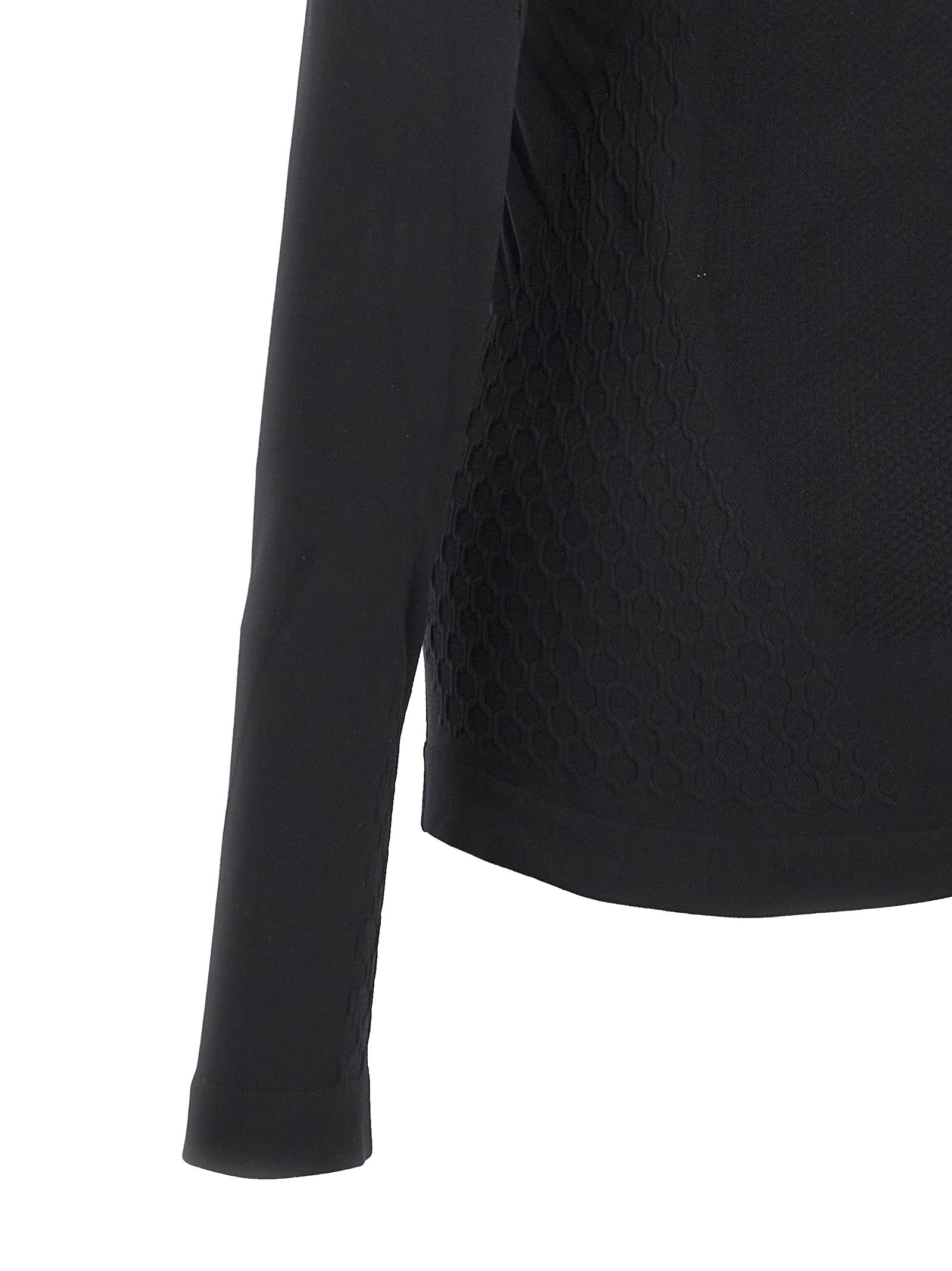 سترة Maison Margiela x SALOMON MM6 مصنوعة من نسيج مطاطي، رقبة دائرية، شعار منقوش على الأمام، وأكمام طويلة.