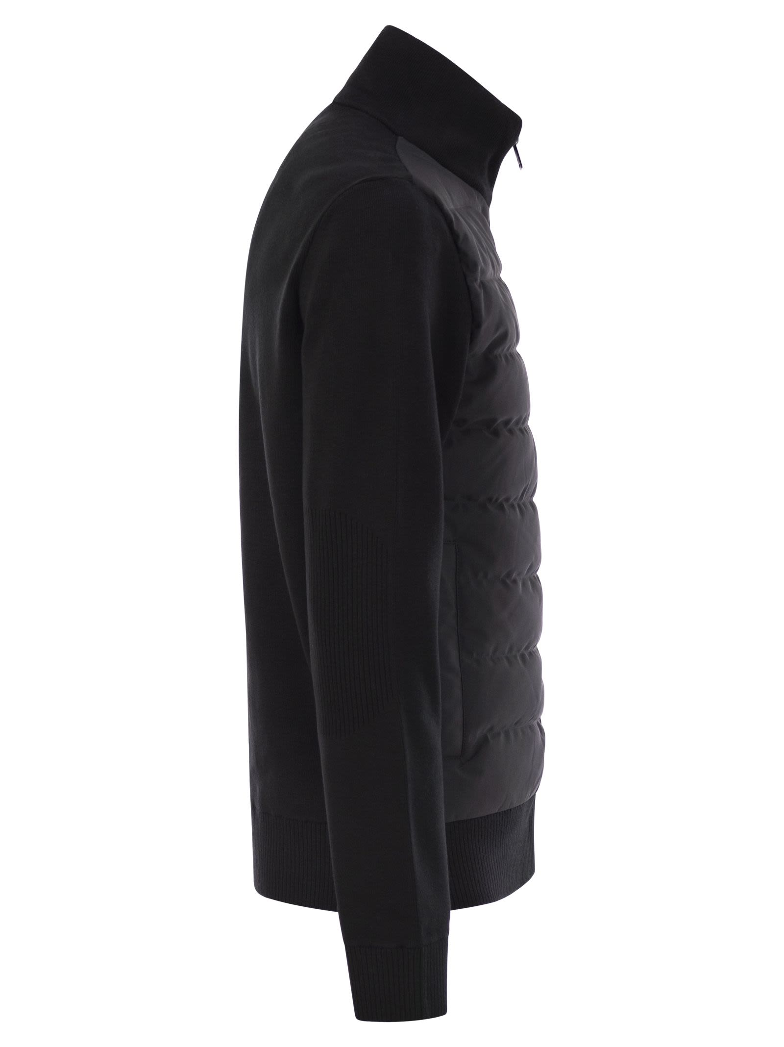 This Hybrid combines the warmth of a down bodice with the comfort of plush sleeves. Perfect for transitional weather, it offers versatility and style in one stylish package. - Slim Fit: A tailored silhouette, cut close to the body across the chest, waist, hips and thighs. Its fitted profile minimizes bulk, moves with the body and fits comfortably in light layers. - 800 Fill PowerRDS Sustainable, Water Repellent, Water Resistant, Wind Resistant - Design and functionality - Ribbed knit collar - 1-way closure with logo puller - 2 pockets with snap closure below the waist - Gunmetal-colored rubber logo patch DESIGNER ID: M34MK659 292