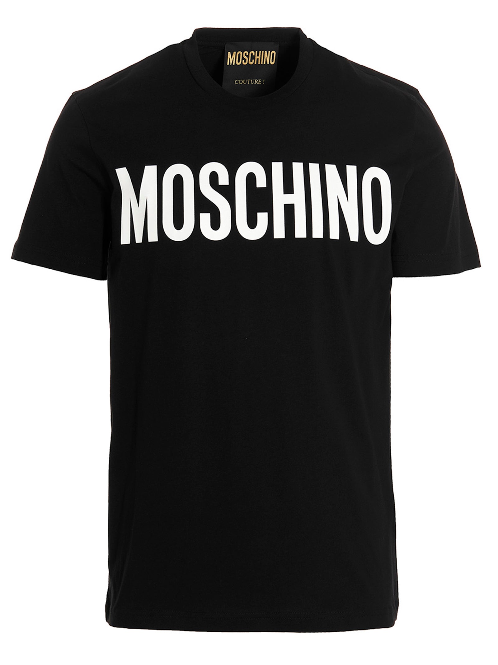 تيشيرت "Label" من القطن، بياقة دائرية وطبعة شعار أمامية، وأكمام قصيرة.