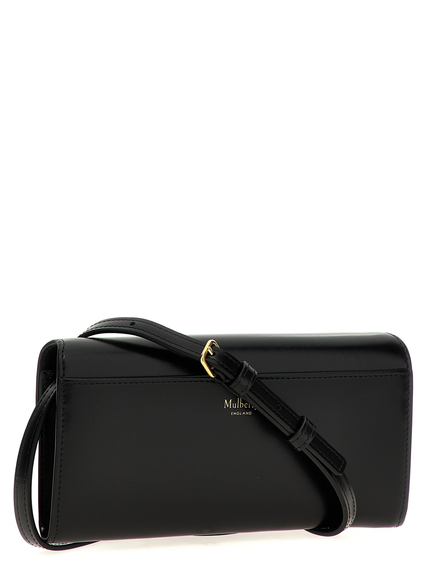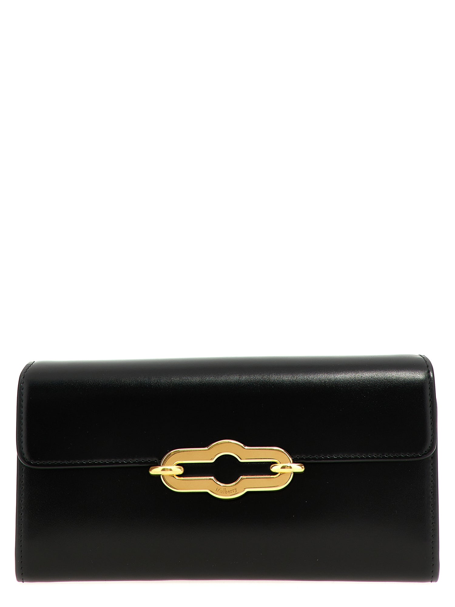 محفظة جلدية على سلسلة، قفل قلاب سريع مع زخرفة قفل "بيمليكو" معدني أمامي، وحزام كتف قابل للتعديل والإزالة.