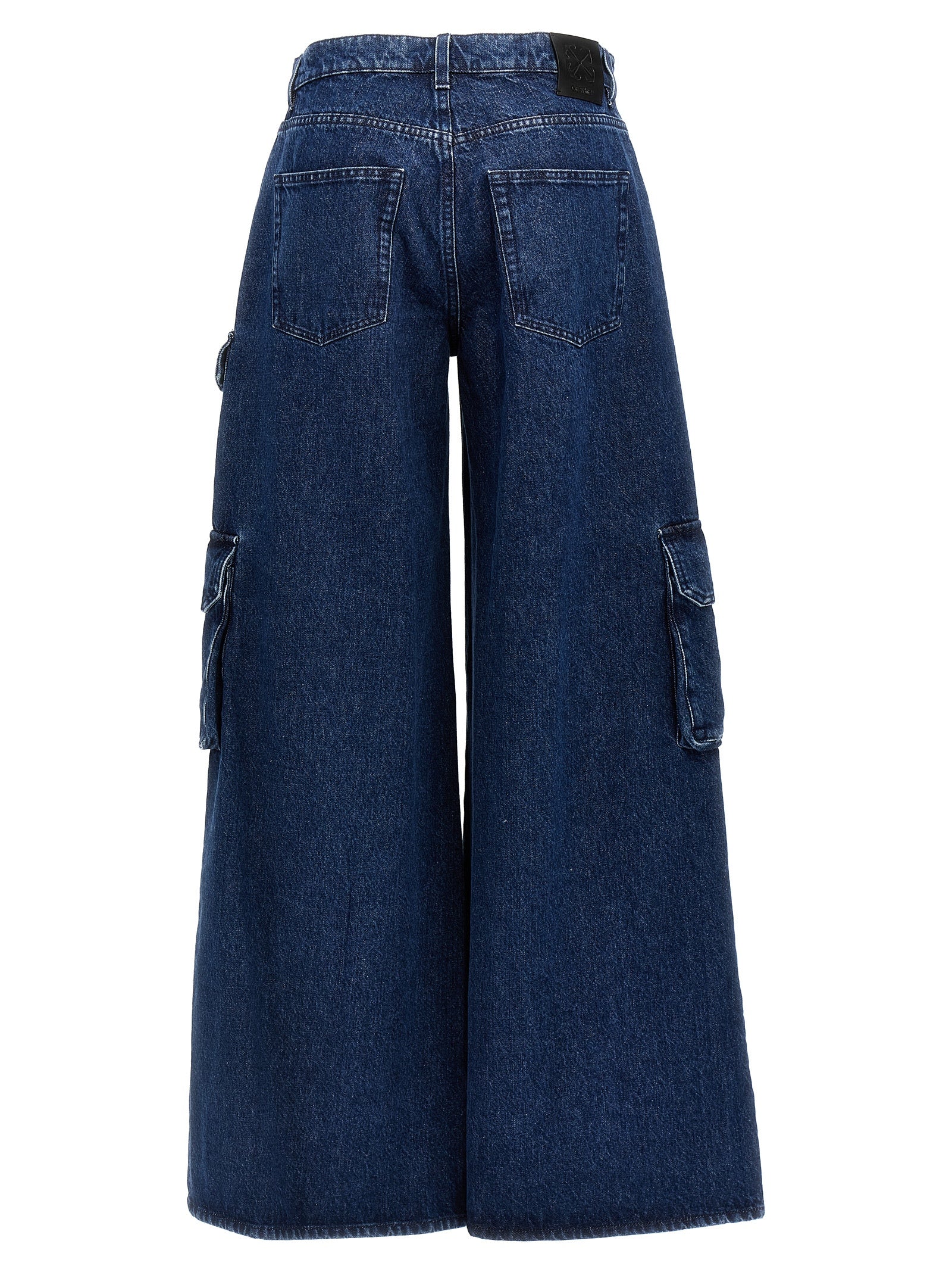 بنطال جينز من القطن "Cargo Wide" مزود بزر للإغلاق، وجيوب، وساق واسعة، وعلامة شعار جلدية.