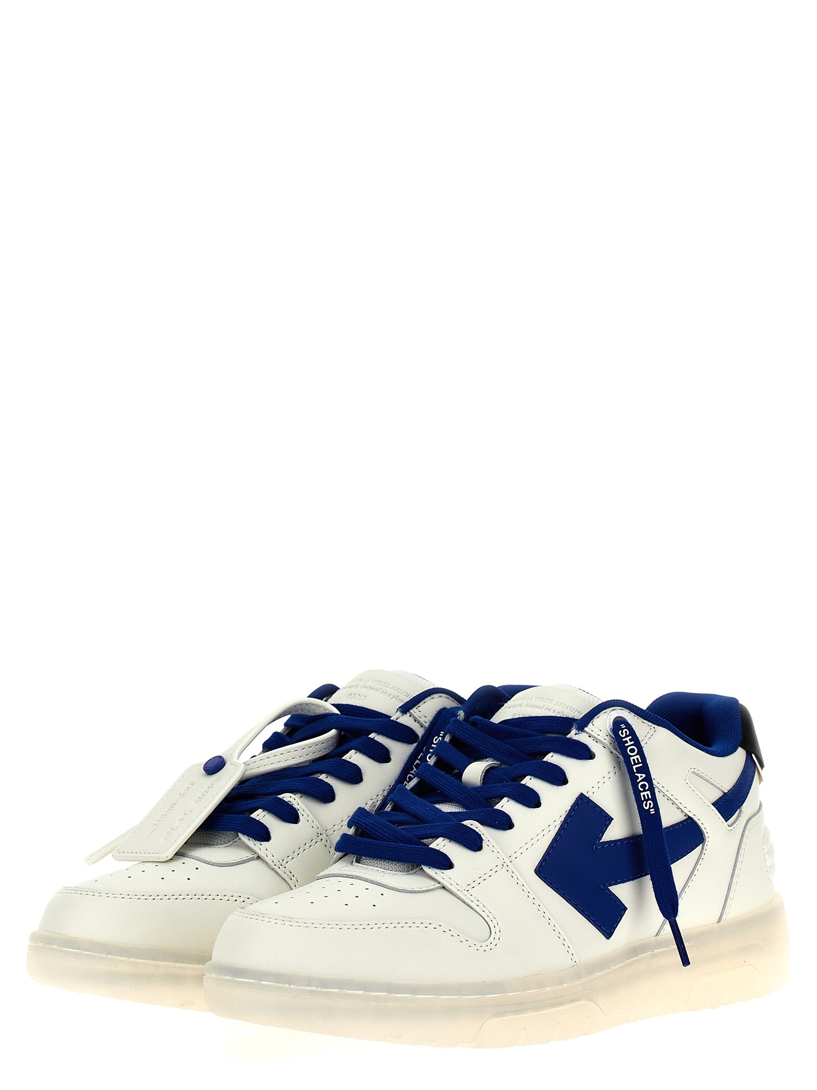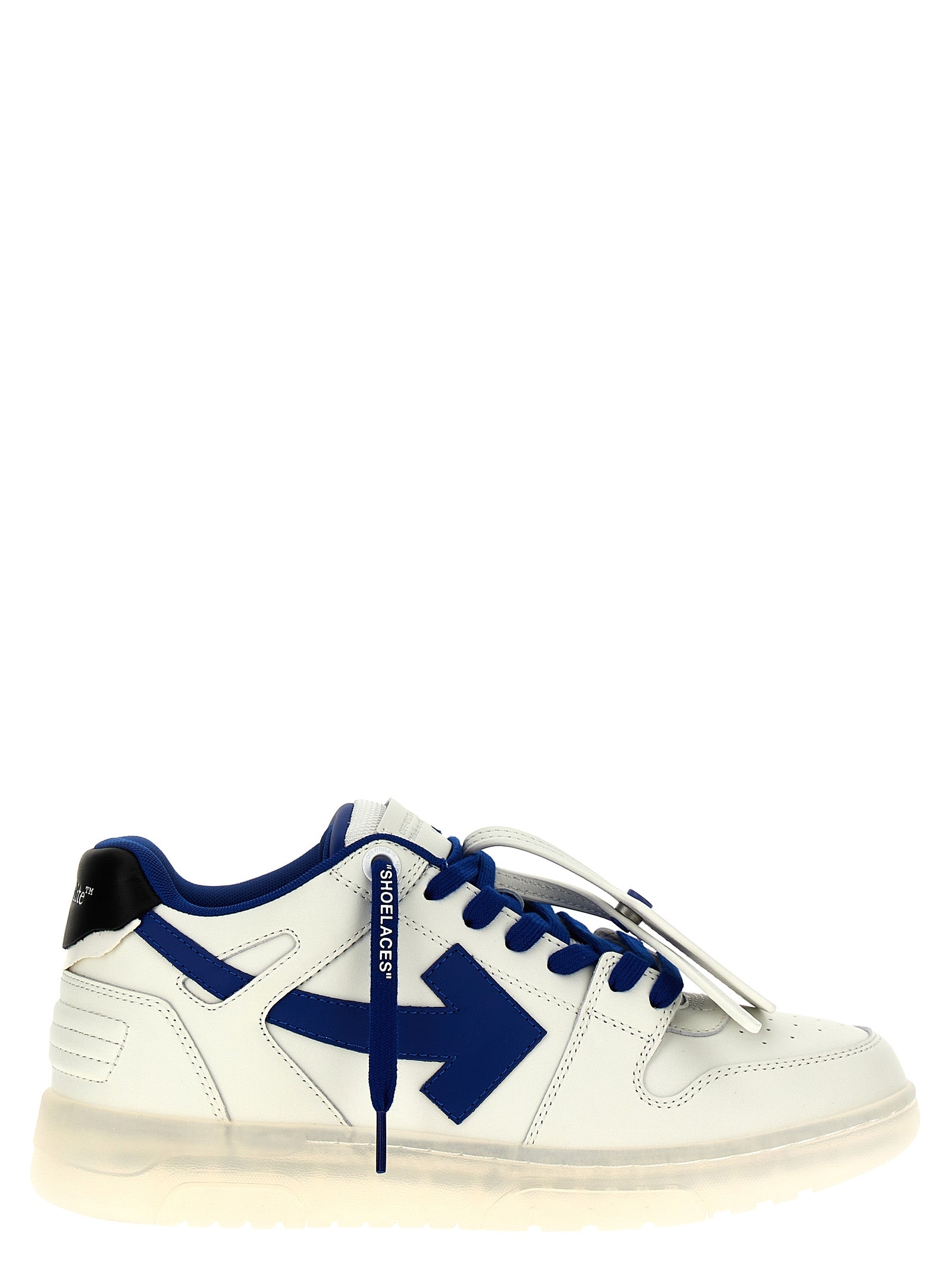 حذاء رياضي من الجلد "خارج المكتب"، جزء علوي منخفض بنعل مطاطي شفاف، إغلاق برباط.