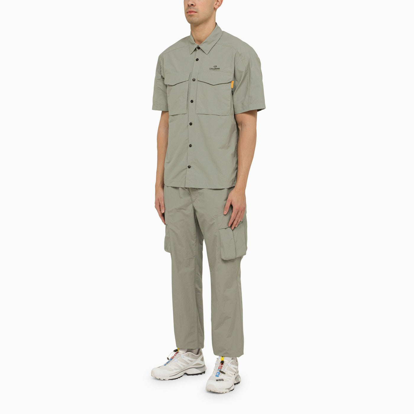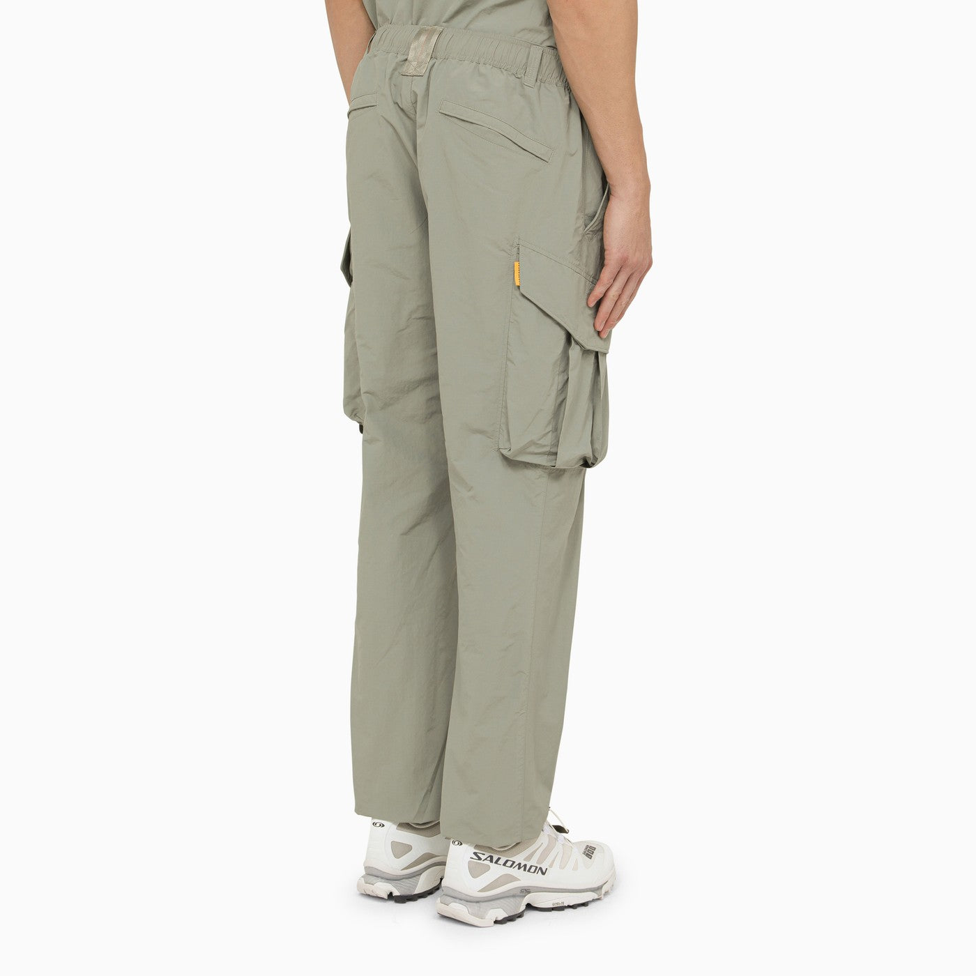 بنطال نايلون رمادي من تصميم Parajumpers، يتميز هذا المنتج بحزام مطاطي وحلقات للحزام وجيوب جانبية وخلفية مبطنة وجيبان مخيوطان بزر كبس وشريط أصفر ورجل سفلية مطاطية وشارة شعار على الأمام.