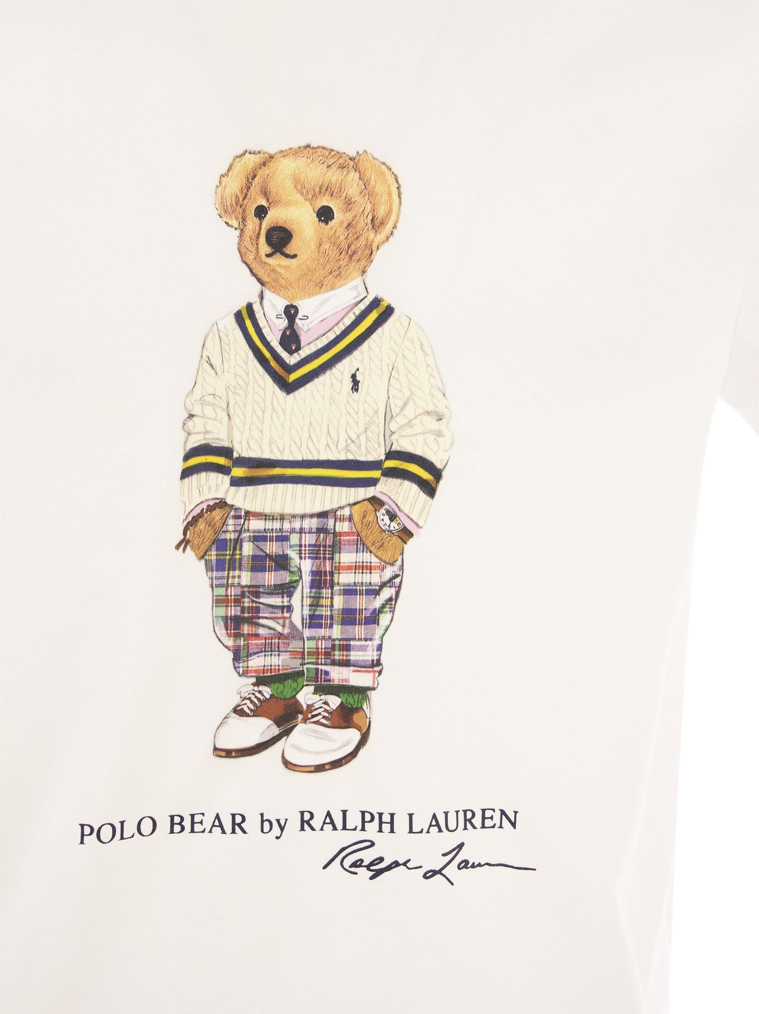 تم تزيين هذا التي شيرت القطني الناعم بلوفر Polo Bear المحبوب برقبة على شكل حرف V. - قصة ضيقة مخصصة: قصة ضيقة قليلاً عند الصدر والخصر - رقبة دائرية - أكمام قصيرة - دب بولو وعبارة "Polo Bear by Ralph Lauren" و"Ralph Lauren" مطبوعة في منتصف الجزء الأمامي، رقم تعريف المصمم: 710853310 018