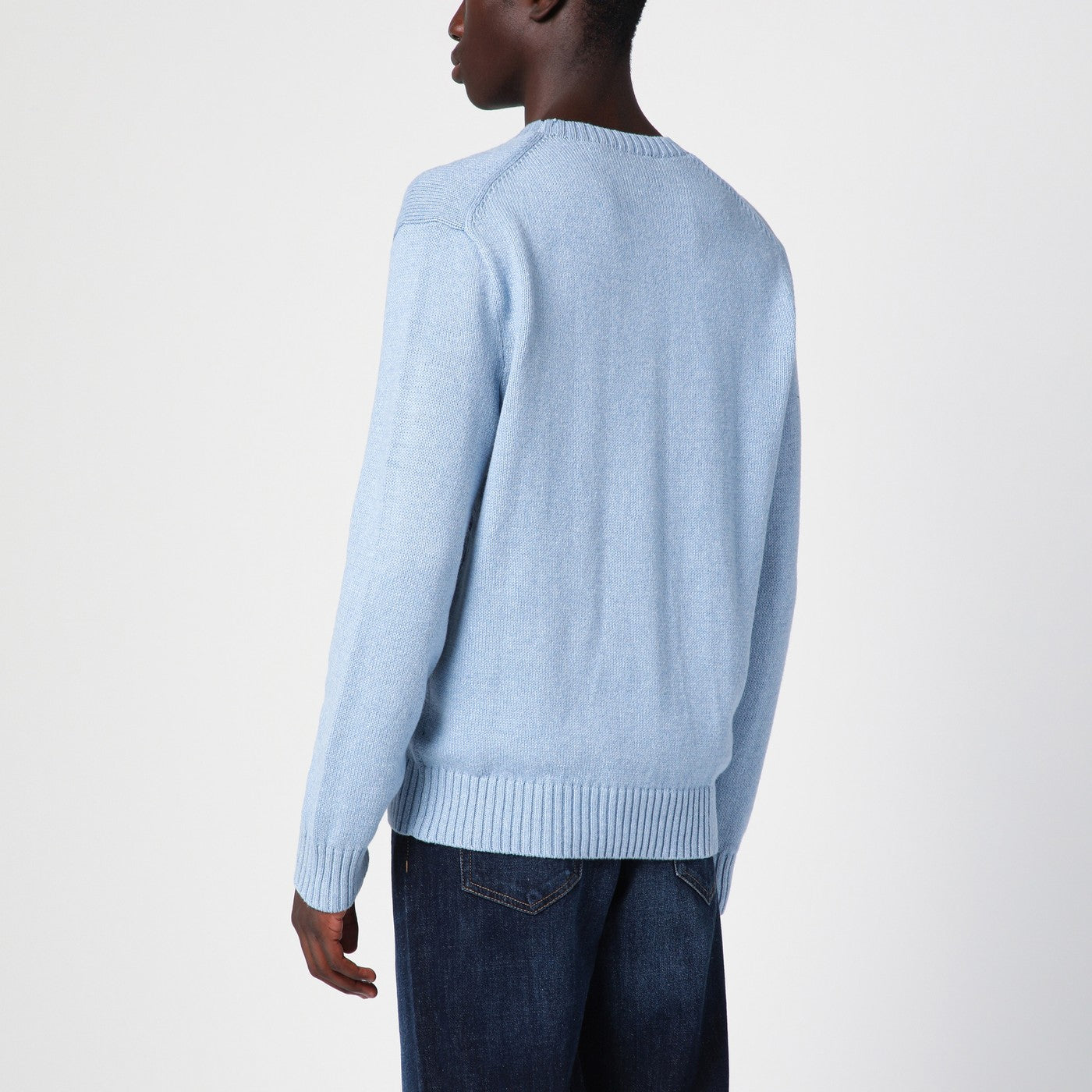 كنزة برقبة دائرية من تصميم Polo Ralph Lauren من القطن باللون الأزرق الفاتح، ومطعمة بطبعة Polo Bear وتطريز RL على الجهة الأمامية، وياقة مضلعة، وأساور أكمام، وحاشية.