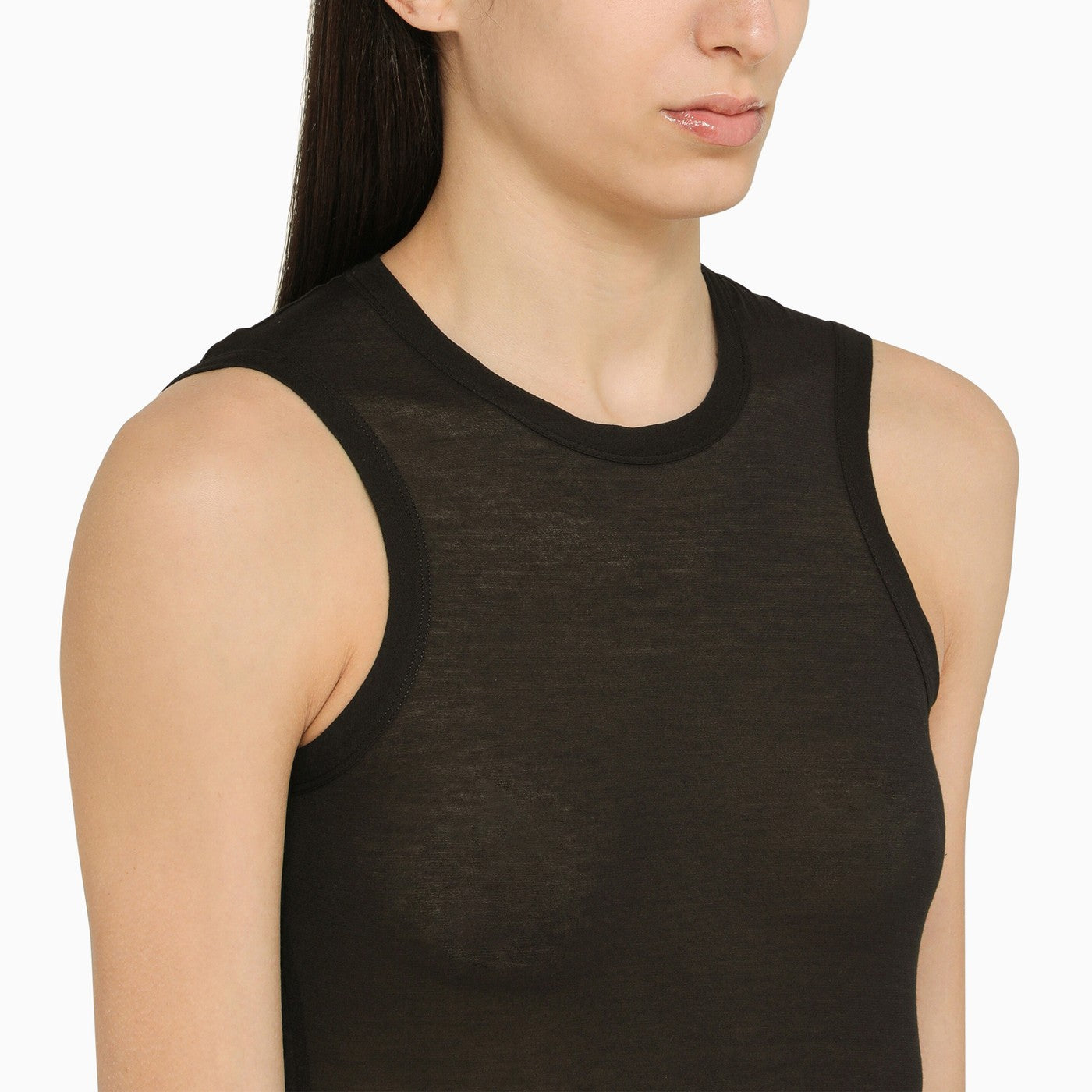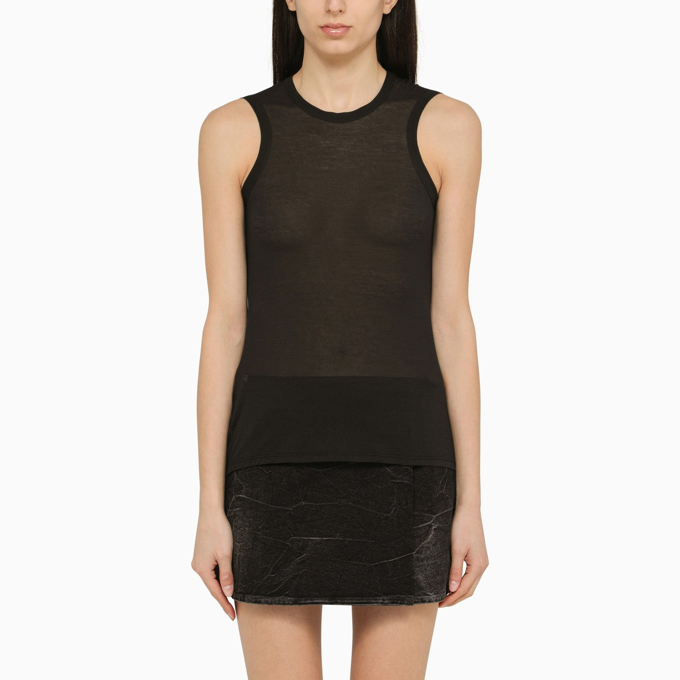 قبة دائرية بدون أكمام من القطن المختلط باللون الأسود من روبرتو كولينا، تتميز بتصميم شبه شفاف ومستقيم.