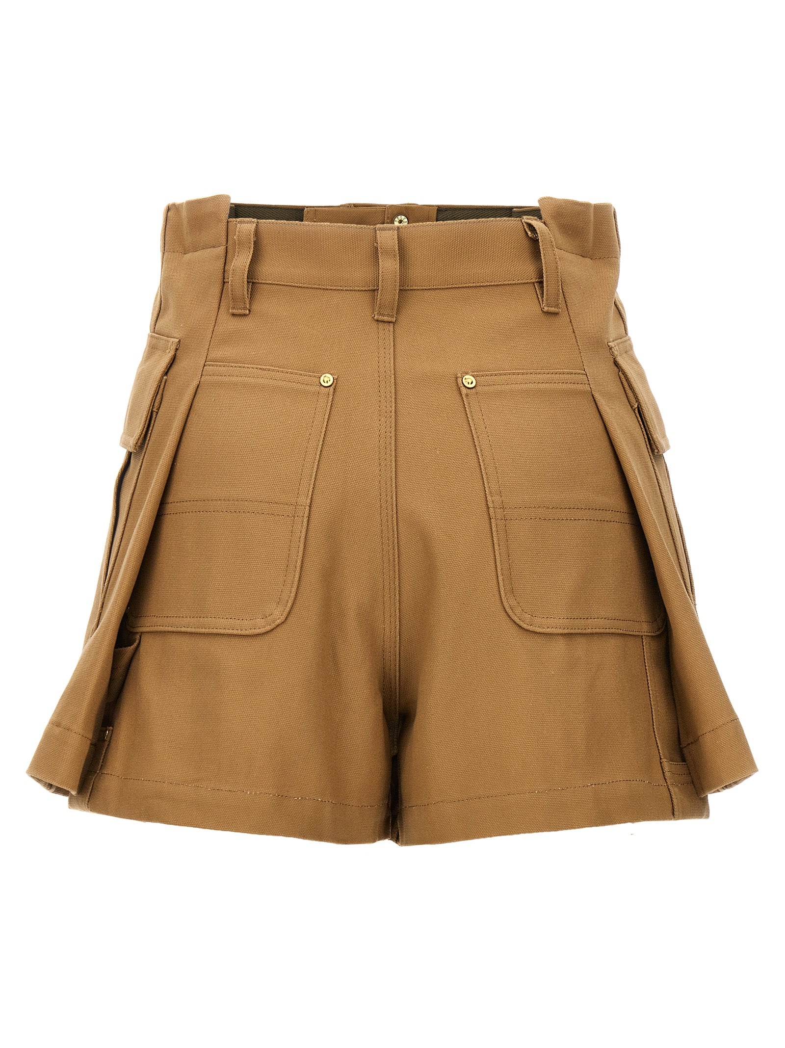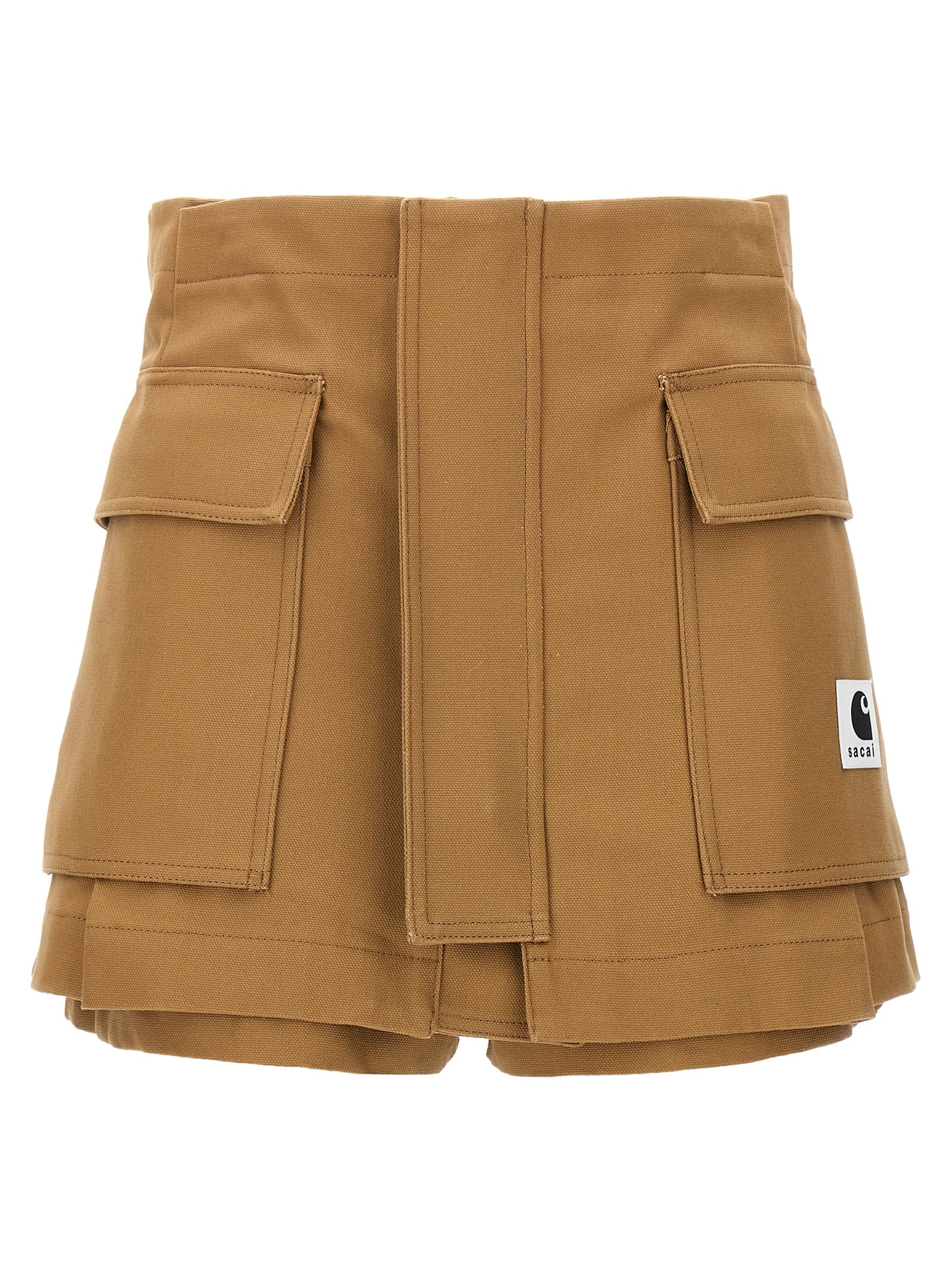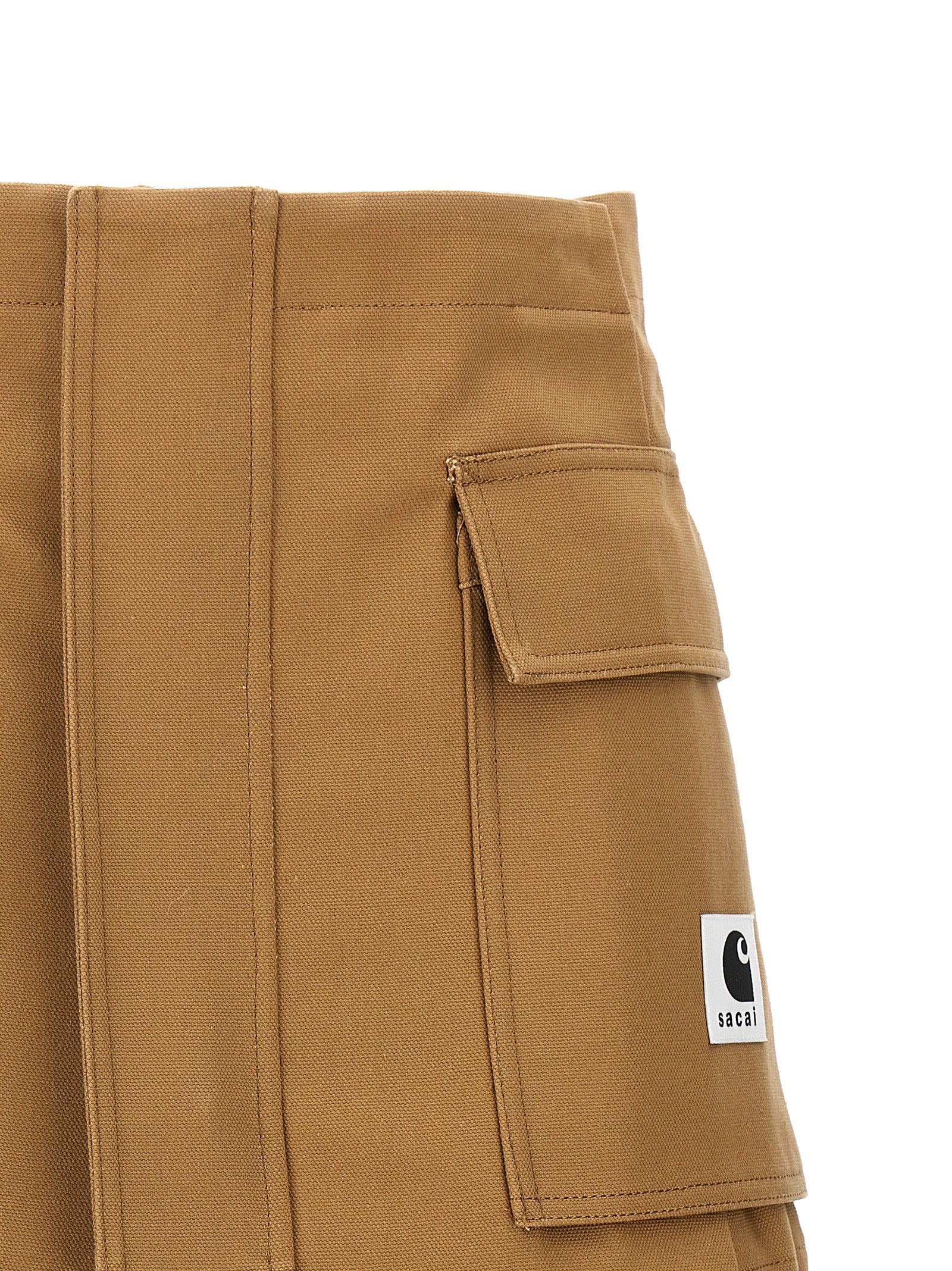 شورت من قماش Sacai x Carhartt WIP مع سحاب وزر مزدوج للإغلاق، وجيوب ورقعة شعار أمامية.