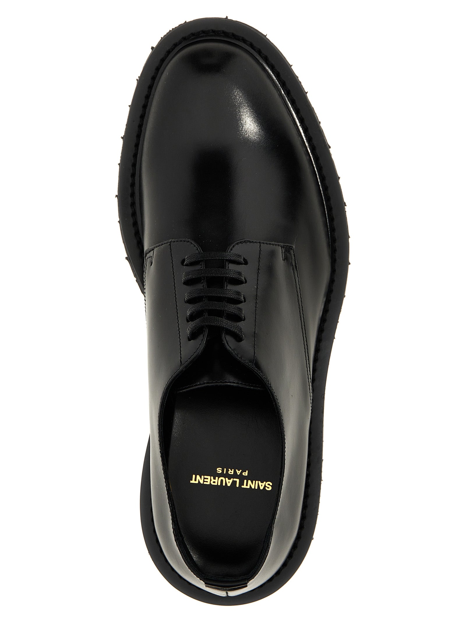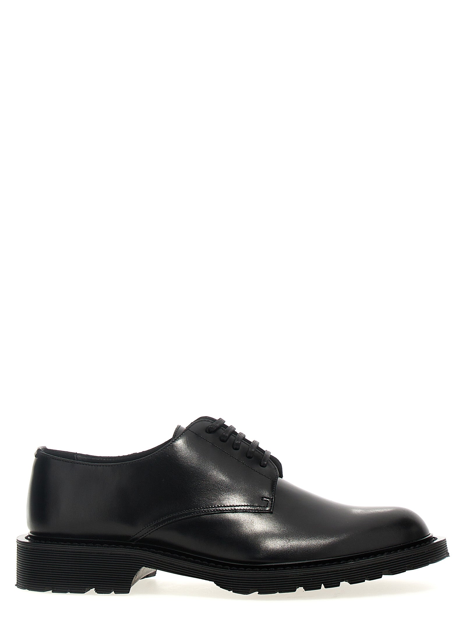 حذاء ديربي جلدي "جيشي" بمقدمة مستديرة وأربطة ونعل مطاطي.