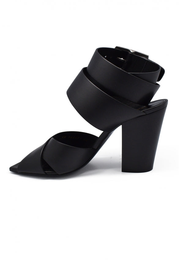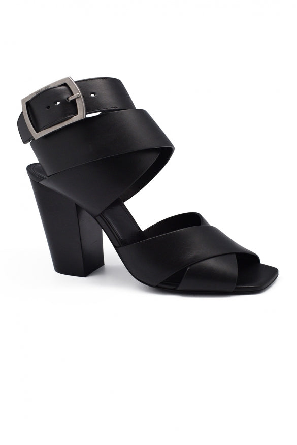 سانت لوران الصليب الصنادل في الجلد الأسود.