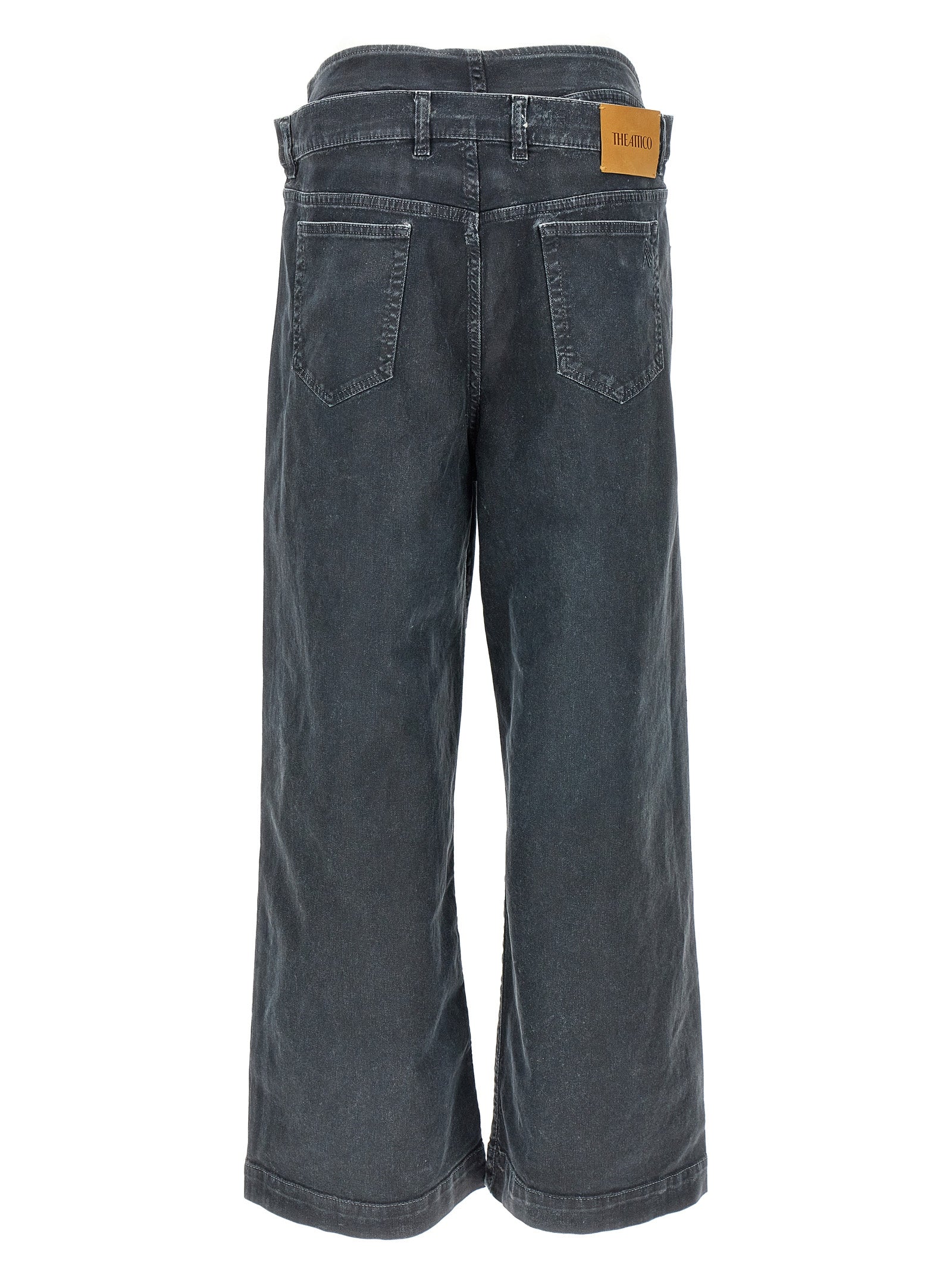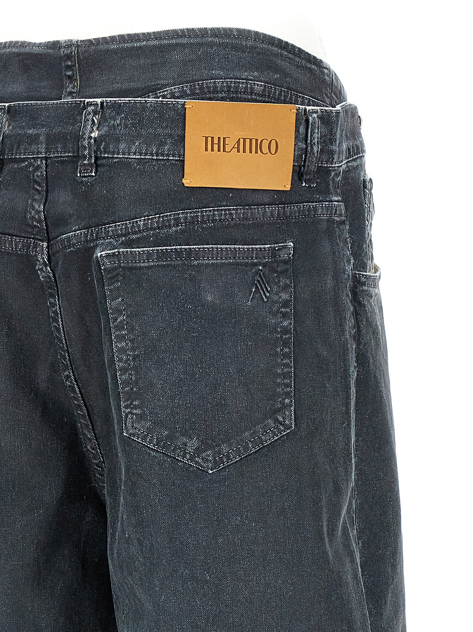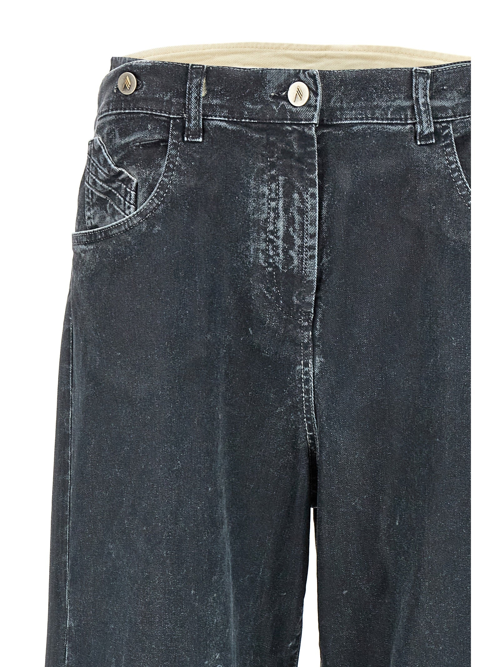 Cotton denim jeans with resin coating, built-in shorts and baggy leg, zip and button closure, five pockets, back logo tag.