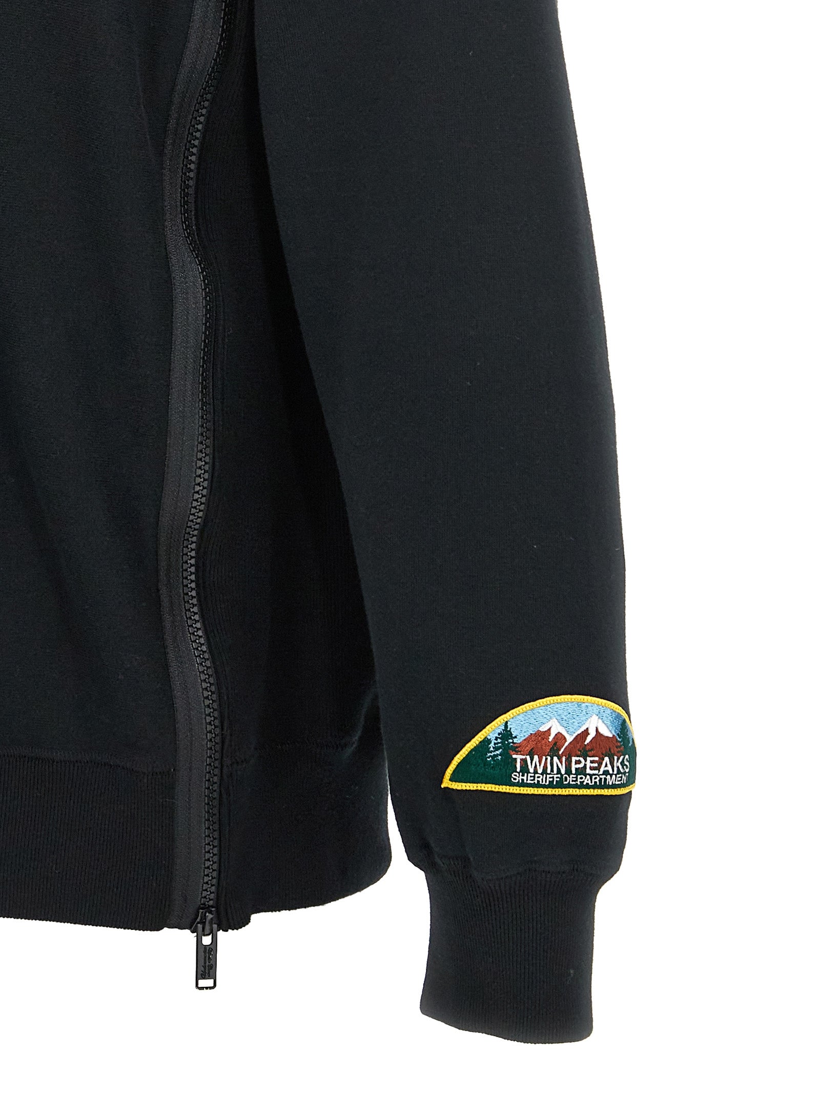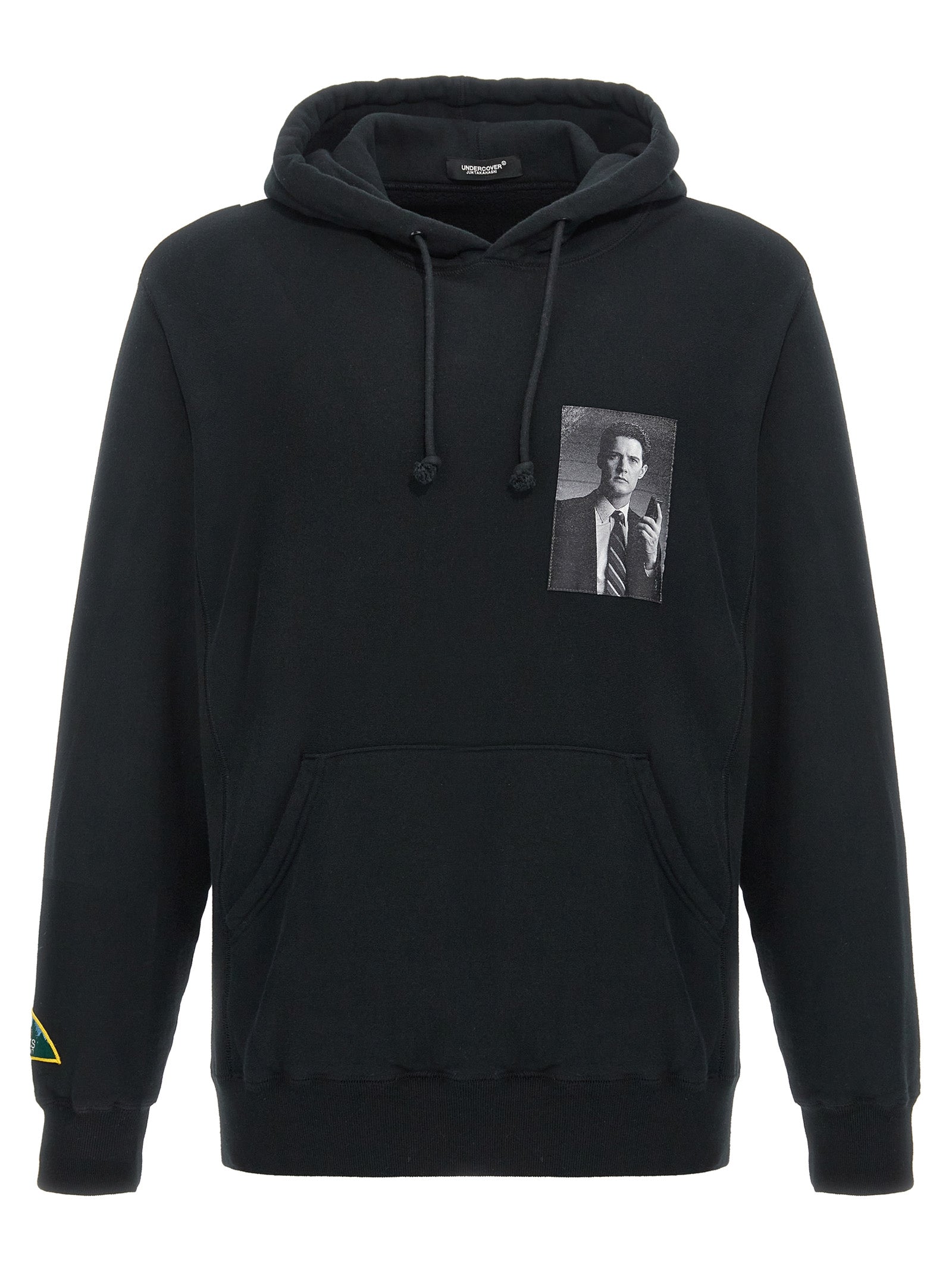 هودي قطن 'Twin Peaks' بتفاصيل رقعة، وجيب الكنغر، وسحاب جانبي خلفي، وأكمام طويلة بأساور.