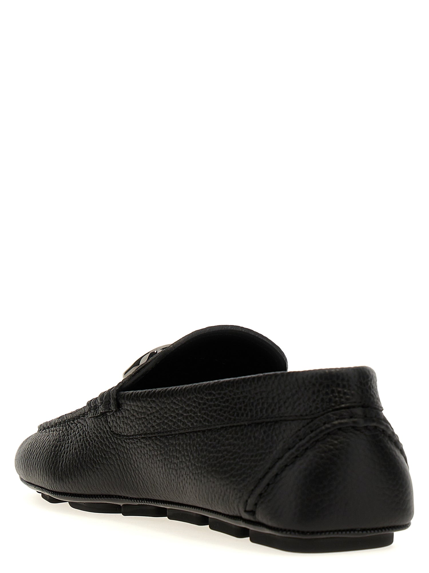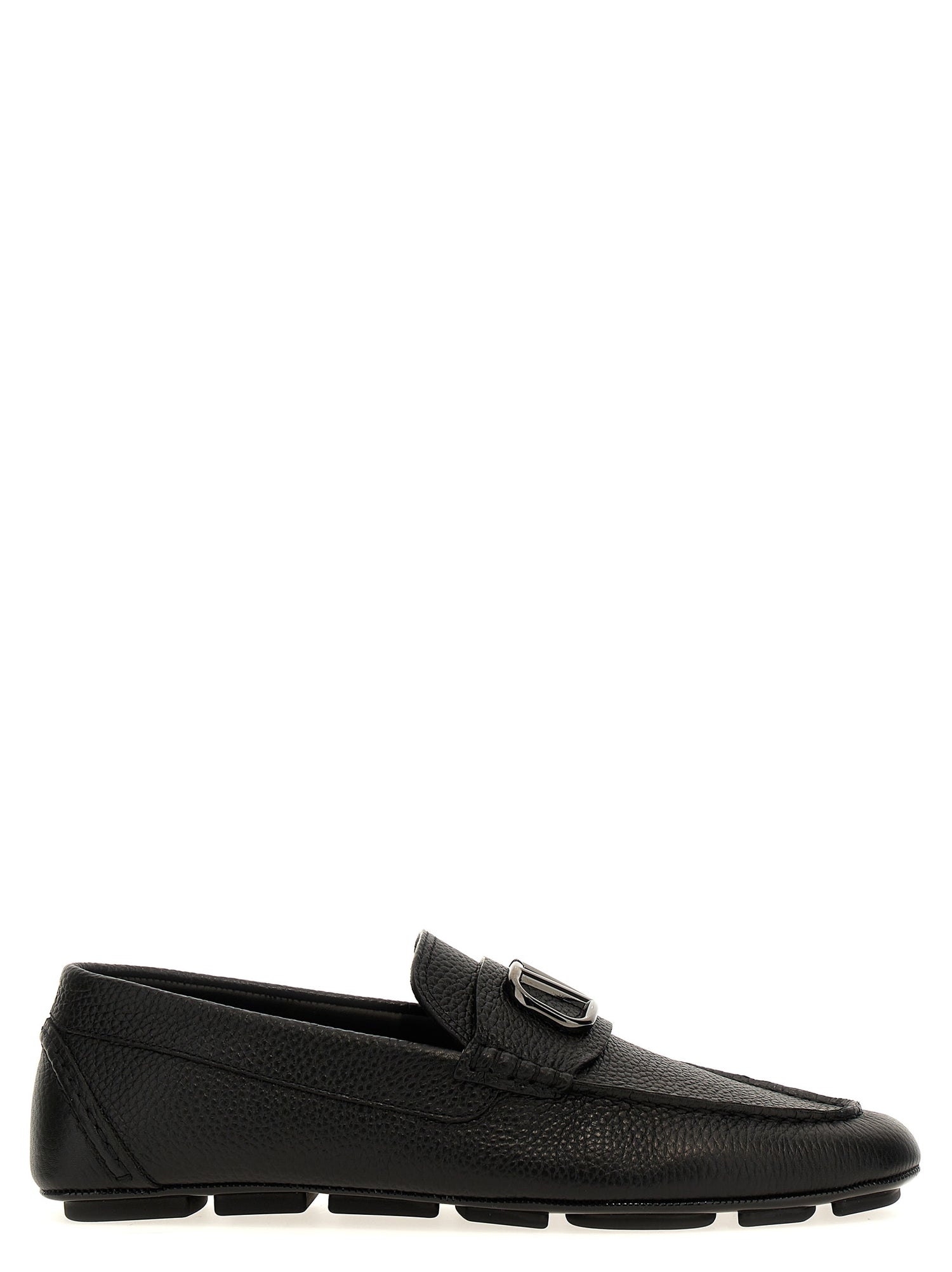 حذاء لوفر للسائق من جلد العجل المحبب مع تفاصيل "VLogo Signature"، ونعل مطاطي.
