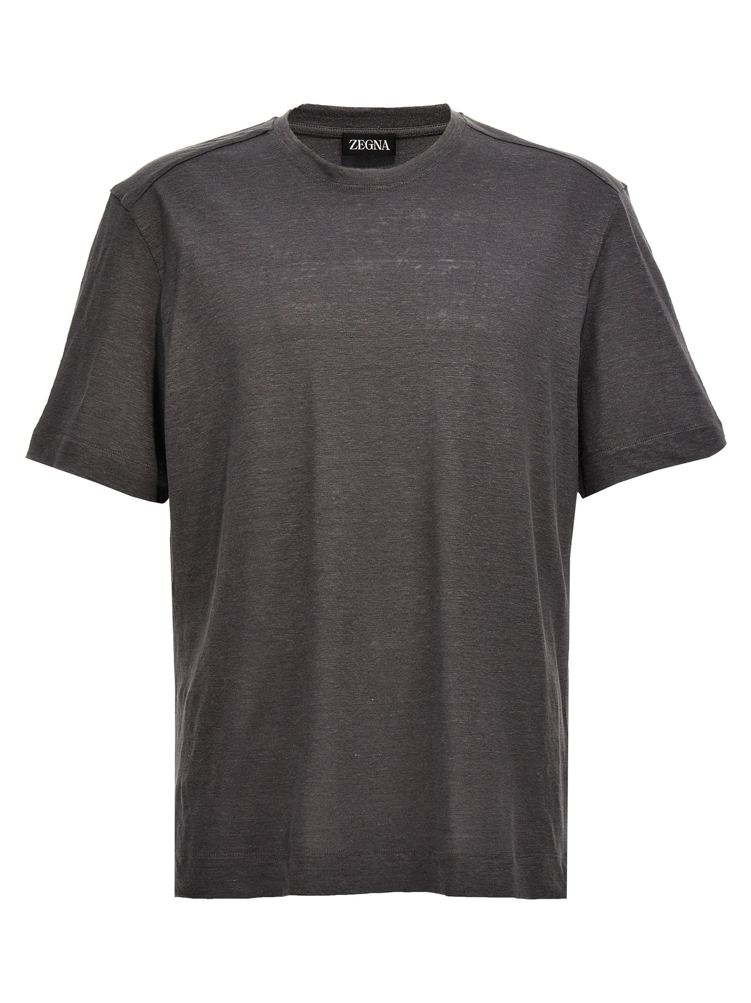 تيشيرت من الكتان بياقة دائرية وأكمام قصيرة.