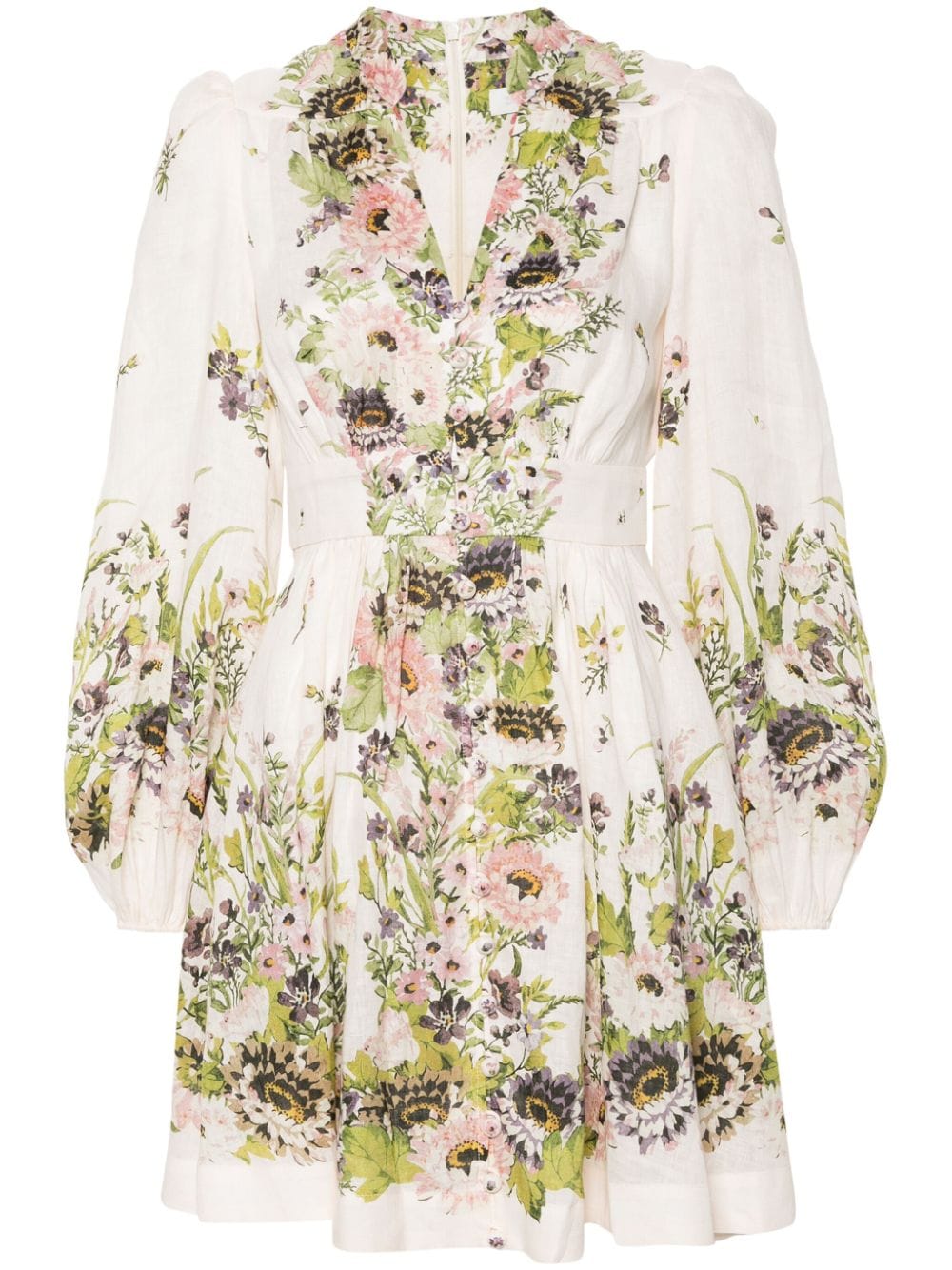 فستان قصير من الكتان بطبعات الأزهار من زيمرمان