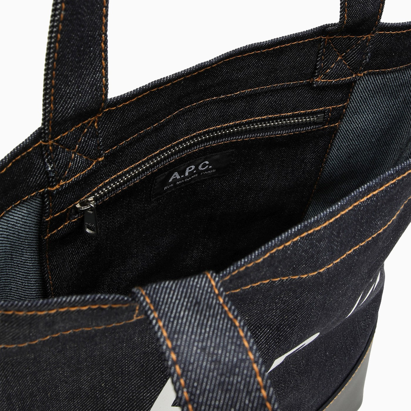 A.P.C. Axel Navy Blue Small Cotton Tote Bag With Logo