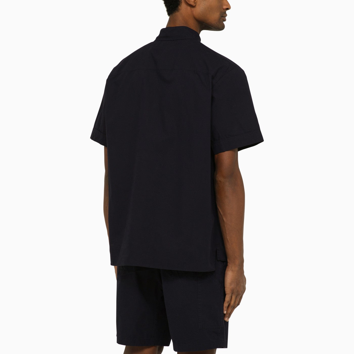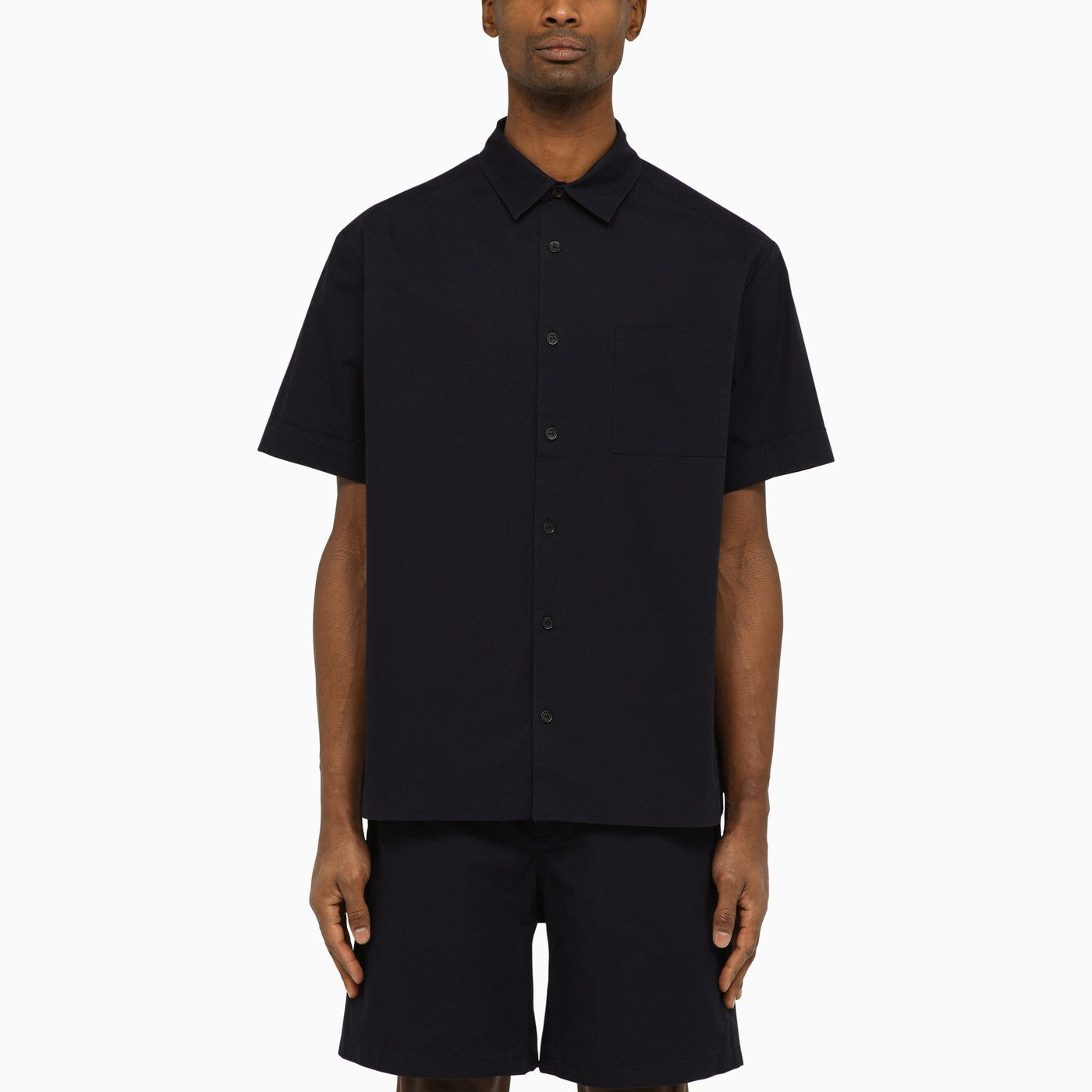 Short-sleeved shirt from A.P.C. in dark navy cotton, featuring classic collar, front button placket, breast pocket, short sleeves and straight hem.