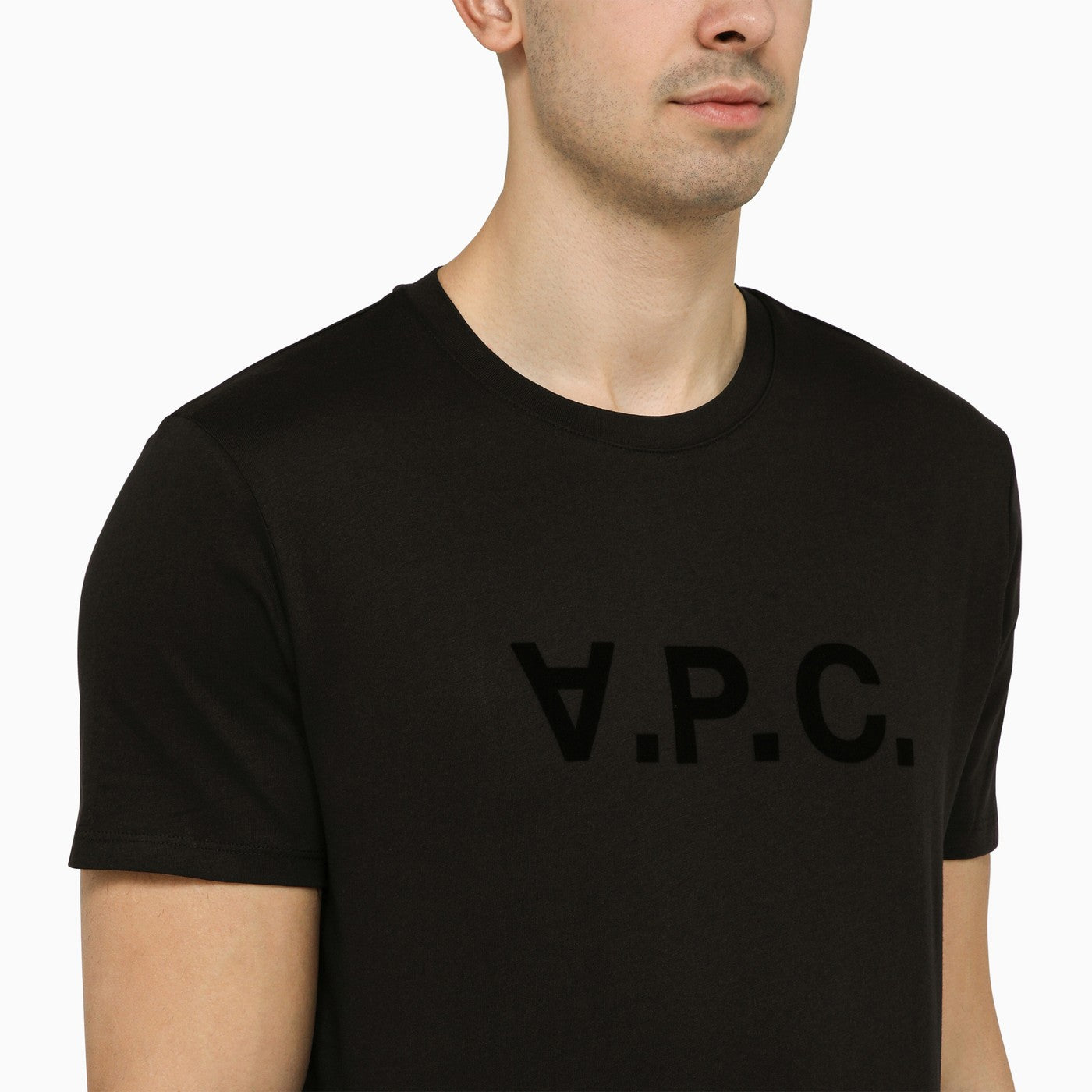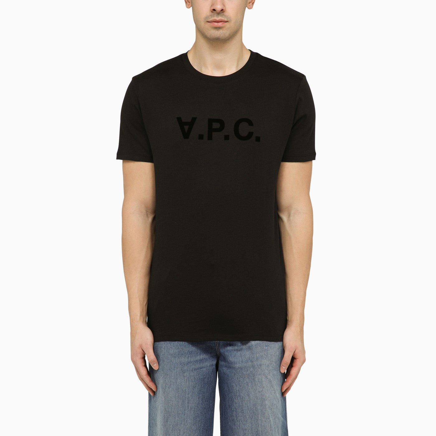Crewneck t-shirt by A.P.C. in black cotton featuring front black logo print, short sleeves and straight hem.