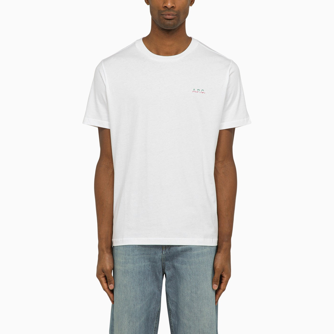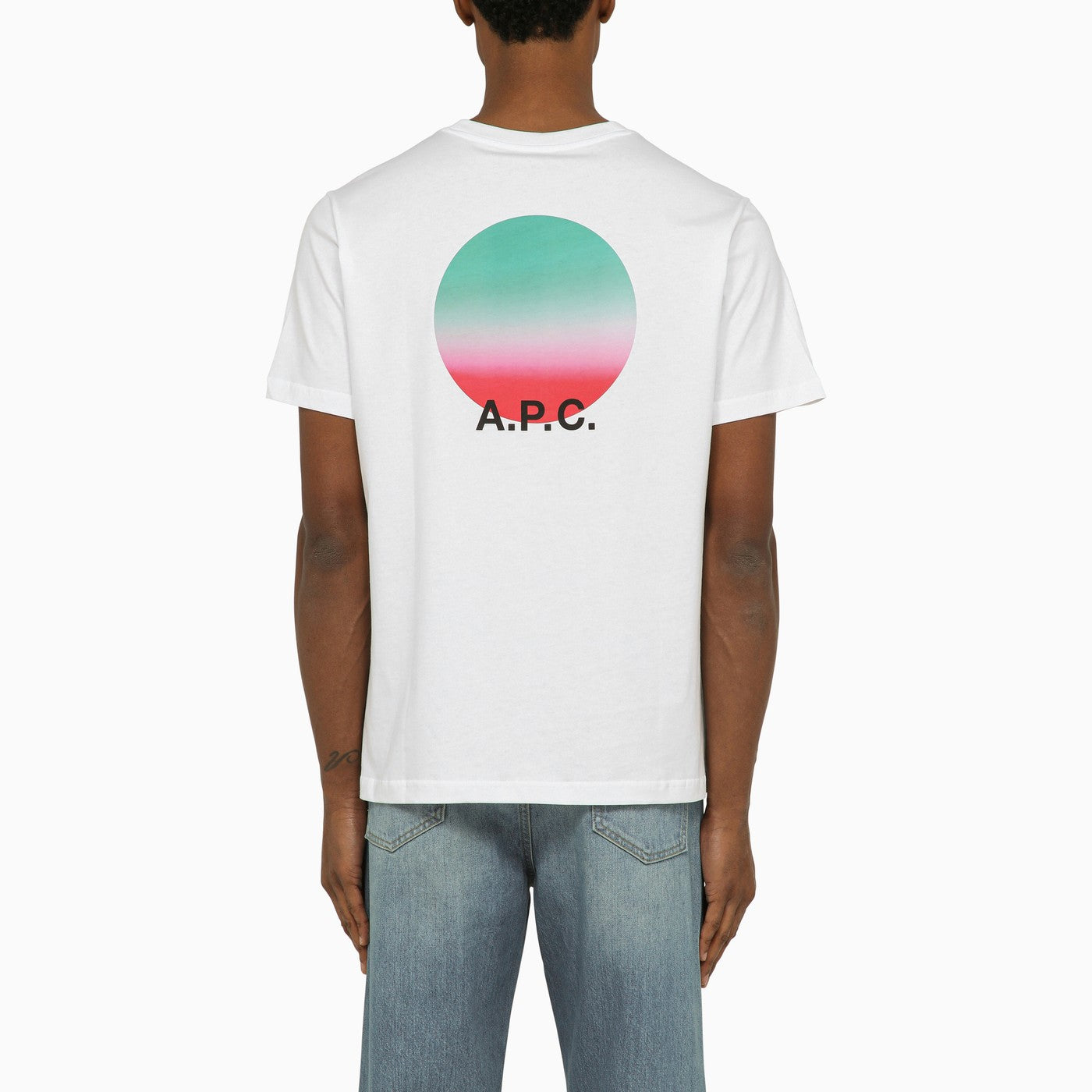 Crew-neck t-shirt from A.P.C. in white cotton featuring a green and red faded logo print on the chest, circular logo print on the back, short sleeves and straight hem.