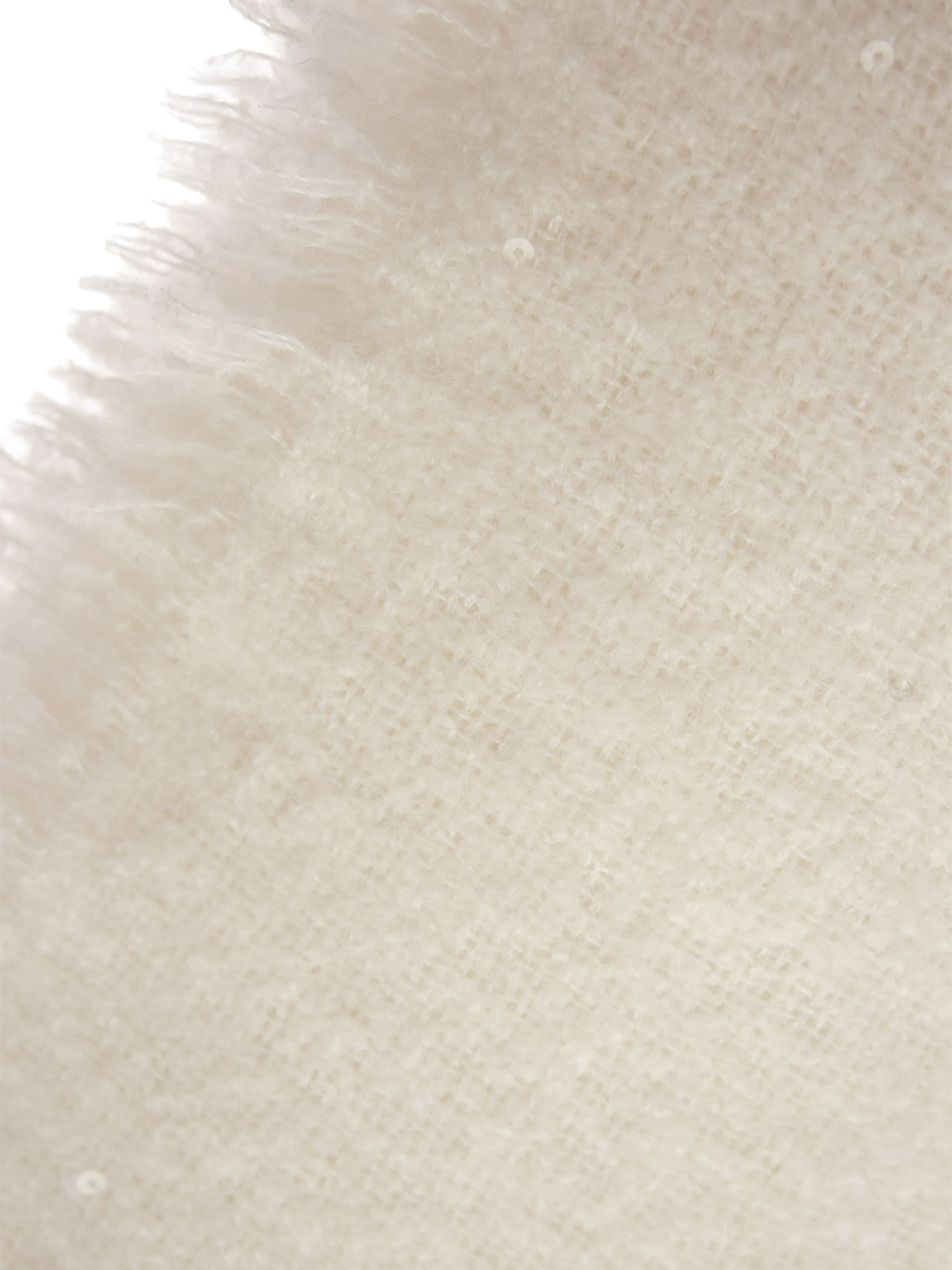 A must-have accessory in a woman's wardrobe, the Soft Dazzling scarf in cashmere and silk is characterised by its extremely soft and fluffy appearance and by Brunello Cucinelli's fine workmanship and materials. The Diamante cashmere and silk yarn, thanks to the small sequins inserted in the thread, gives the soft texture a delicately luminous effect. DESIGNER ID: MSCDVSW05 CU060