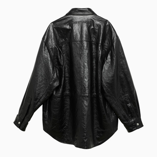 Black leather shirt from Acne Studios featuring a classic collar, long buttoned sleeves and a snap button front fastening.