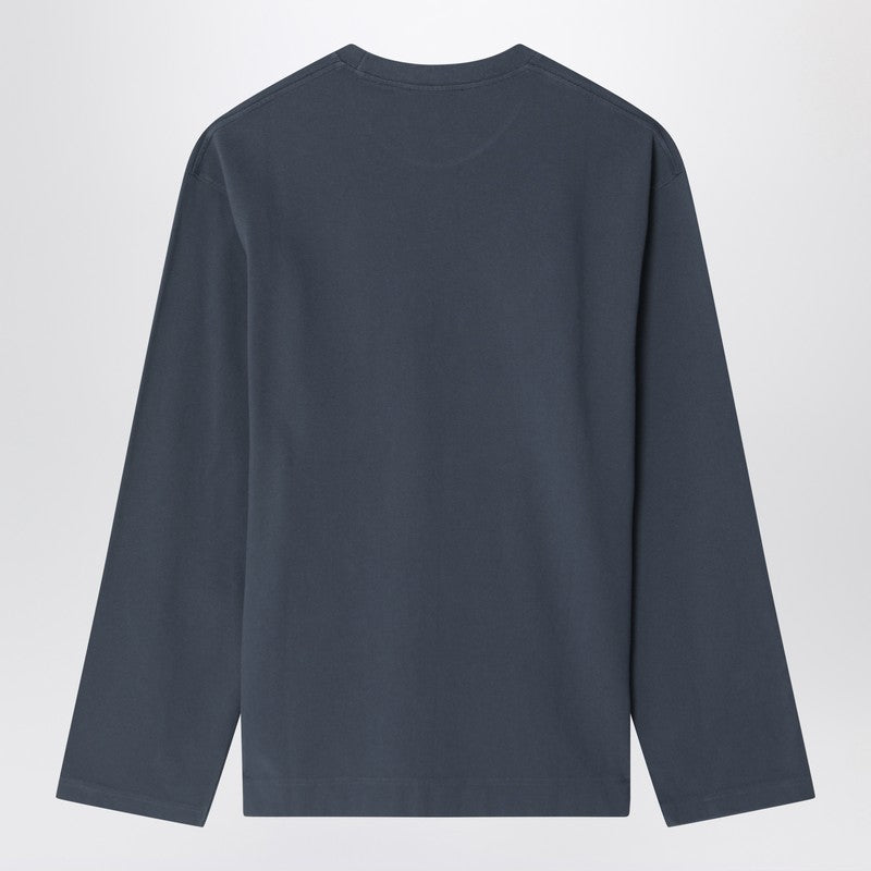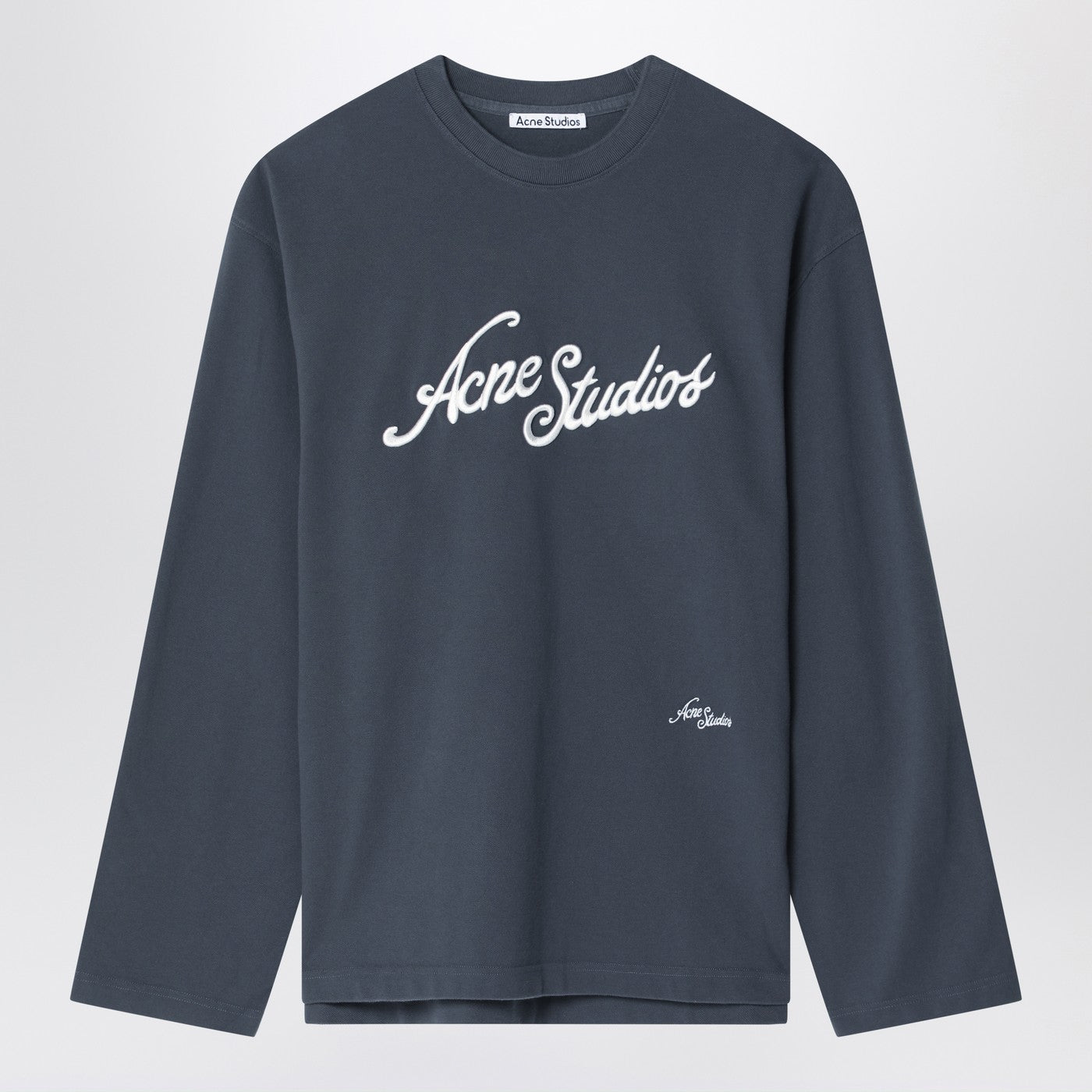 Washed grey cotton T-shirt from Acne Studios featuring long sleeves, a ribbed crew neck and contrasting lettering logo embroidery on the front.